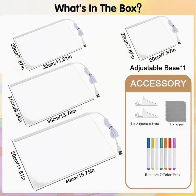 ✨ LED Light Board – Write, Draw, Glow! Turn your ideas into bright, glowing art with this reusable LED light board! Perfect for menus, notes, doodles, or creative signs. The transparent surface lights up your designs in vivid neon colors — just use the included fluorescent markers and watch your message glow. Great for home decor, parties, or small businesses. Features: 	•	Reusable clear board with bright LED illumination 	•	Multiple color modes and light patterns 	•	Works with neon fluorescent markers (easy wipe clean) 	•	USB  	•	Perfect for signs, menus, or creative displays #LightBoard #LEDSign #CreativeDecor #GlowBoard