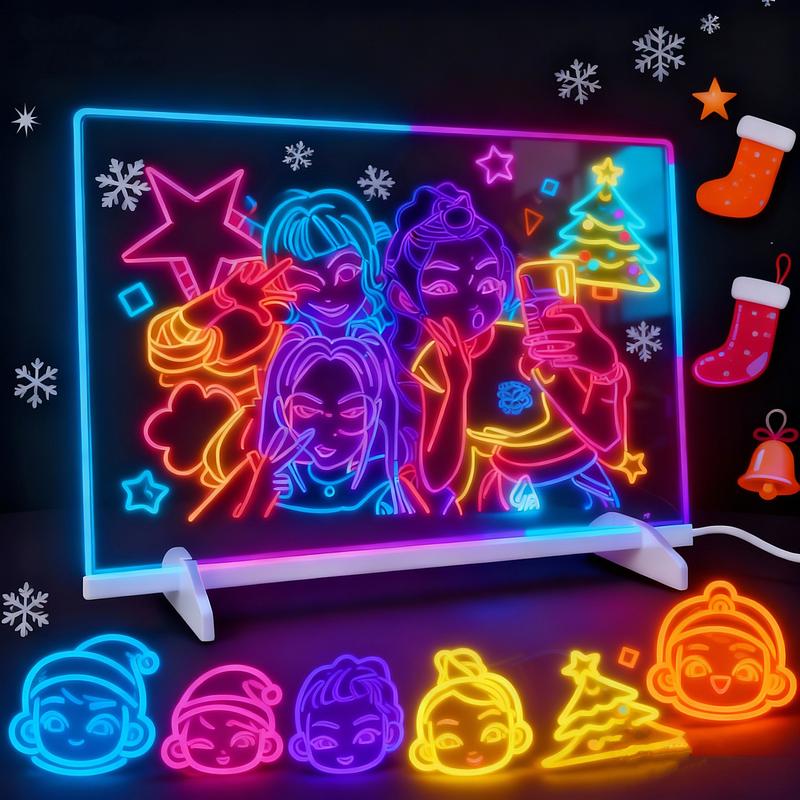 5. Christmas gifts,LED color luminous board, large-sized drawing board, 7 colors of lights, LED drawing board acrylic board with lights, LED drawing board with bracket, 7 marker pens, 2 cloths, erasable learning memo message board, Neon Accent Lights