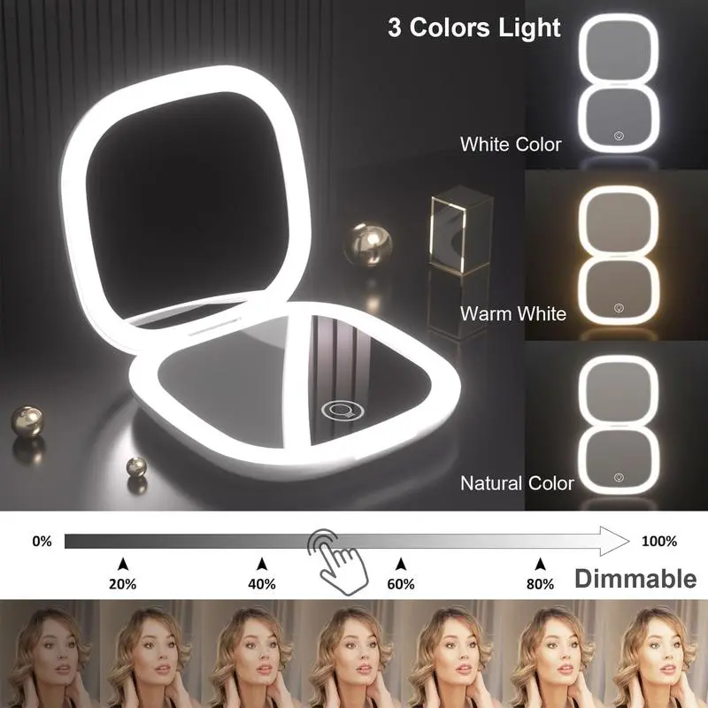 Magnification:With 1x and 10x magnification, this illuminated magnifying mirror is suitable for full-face makeup applications, allowing you to quickly touch up on the go or focus on delicate tasks like plucking and contact lens insertion. The touchscreen side features a 10x magnifying mirror.