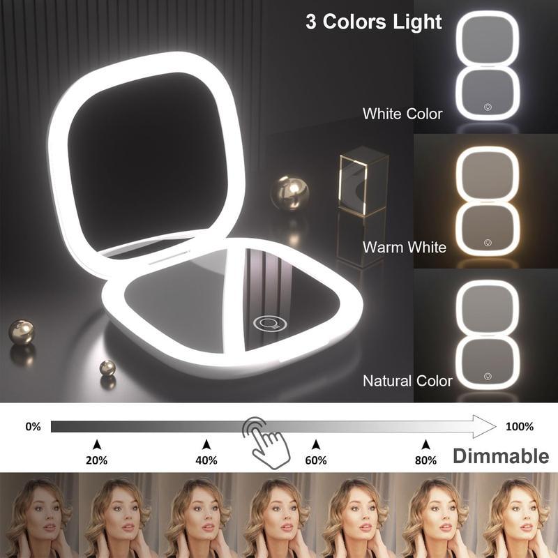 Makeup Mirror:Equipped with three dimmable light settings (white, warm, and natural), this mirror ensures your makeup stays color-accurate and flawless anytime, anywhere. The upgraded LED light ring ensures a bright, even full-face makeup application. The unique flat light panel provides comfortable, focused illumination without glare.