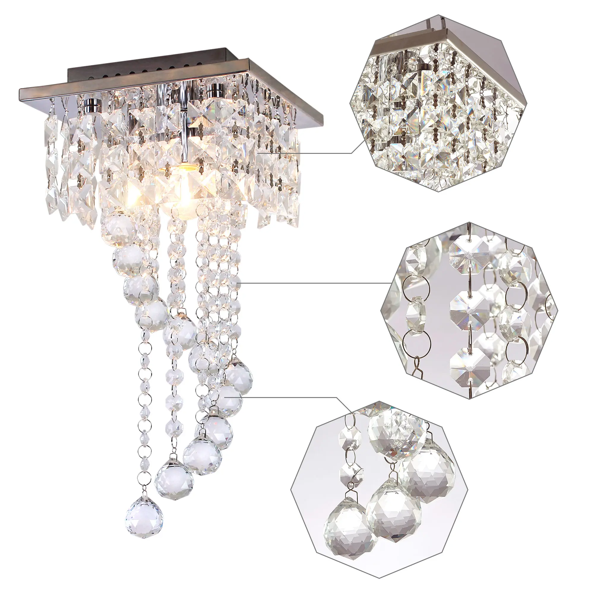 The LED Crystal Ceiling Light QH-MC058 is a versatile and stylish lighting solution for various room types. Its easy installation and modern design make it a practical choice for enhancing the aesthetic appeal of your home.