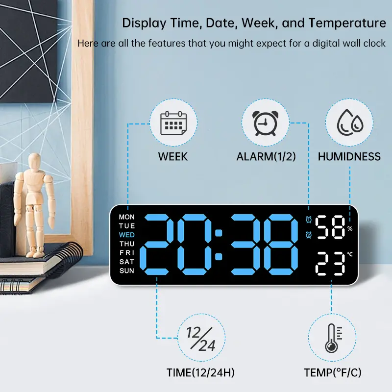 Enhance your home decor with this versatile digital wallΒ clock, designed to meet all your scheduling needs.