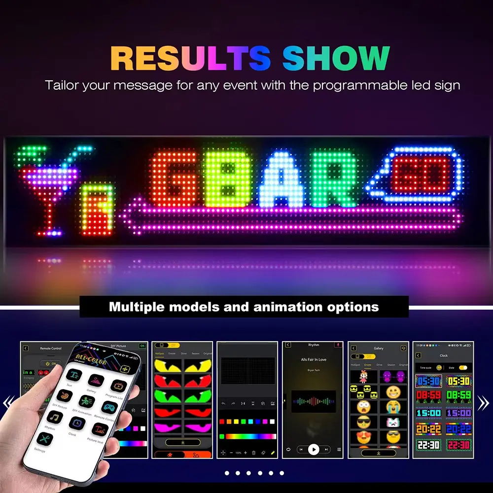 ·Bluetooth App Control — Create and edit text, emojis, patterns, and animations from your phone