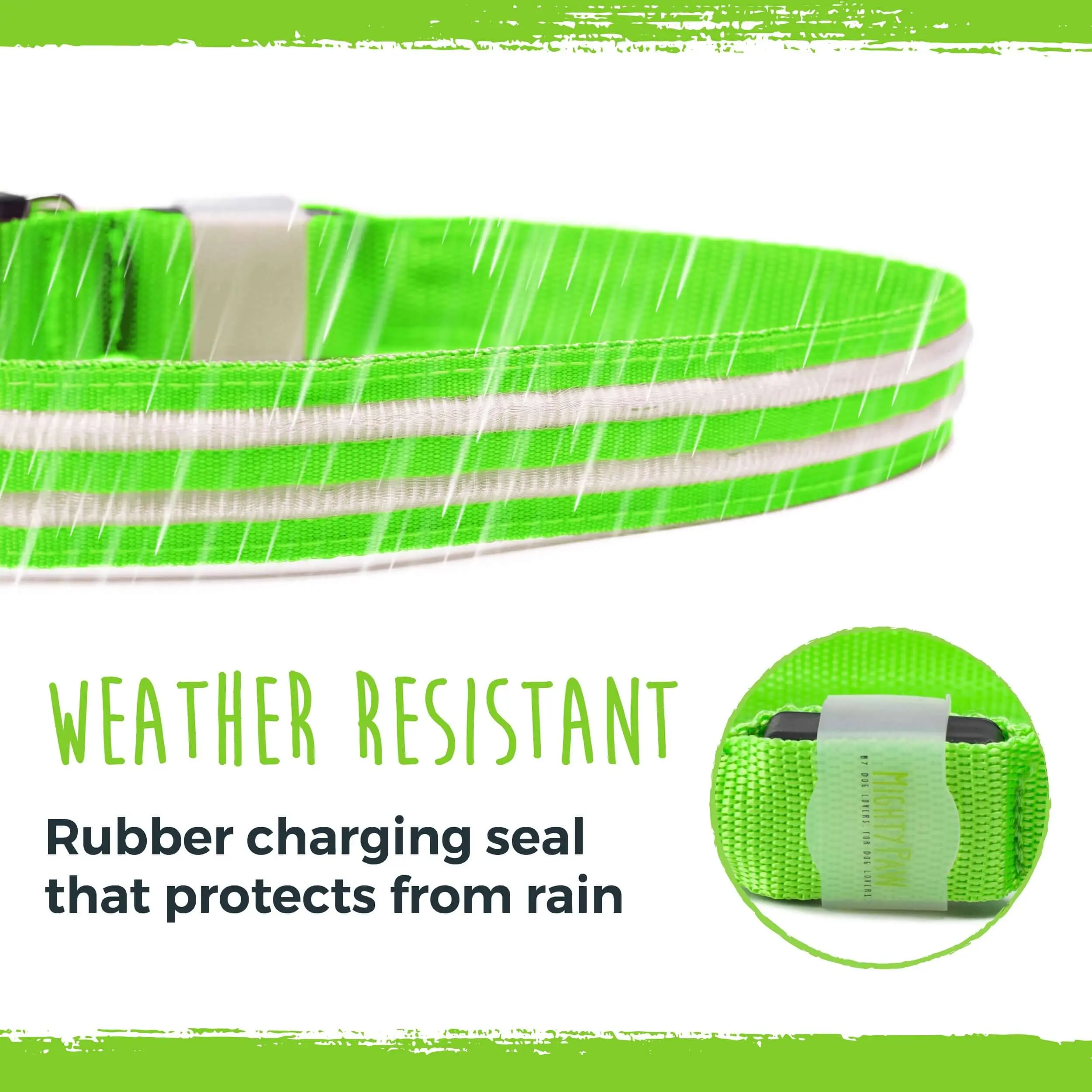 Not as bright as expected. Only about half got really bright. Fits well, still served its purpose. Easy to adjust to size once the you get the larger piece threaded. Sturdy material and leash hook.