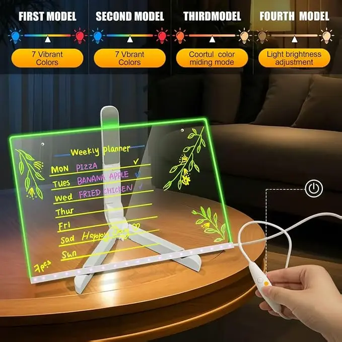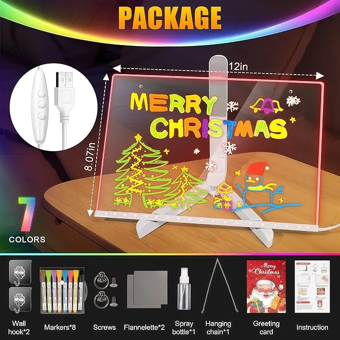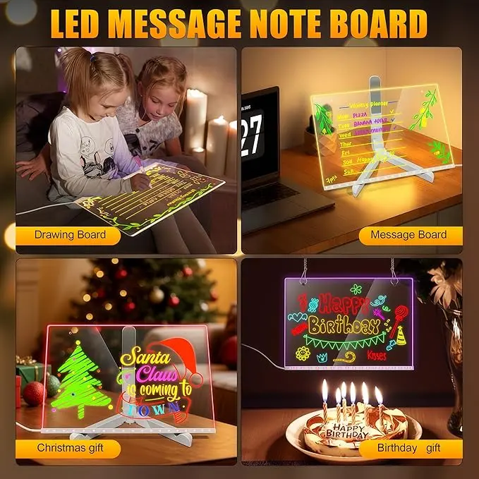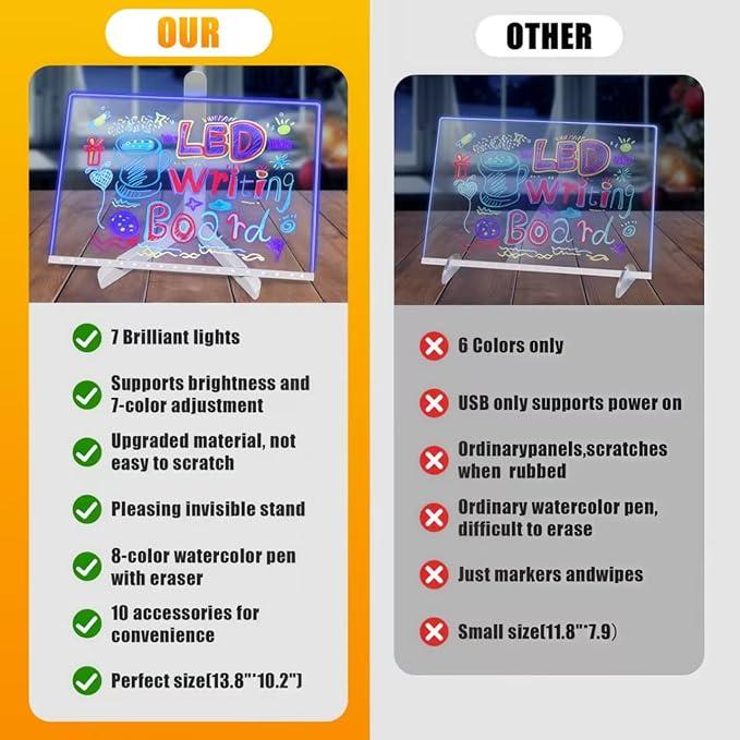 ·User-friendly design:The led drawing board with 7 colors with stand can be placed on a desk or mounted on a wall.The LED label board keeps important reminders visible at all times.drawing for kids can be framed as decorative pieces for the whole family to enjoy,sparking their creativity.