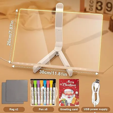 ·High-value accessories:Includes an LED drawing board with built-in adjustable stand,8 easy-clean magnetic dry-erase markers (with eraser caps),adapter, lanyard, spray bottle,cleaning cloth, and sketchbook,No need to buy extra tools—Provide a better user experience.