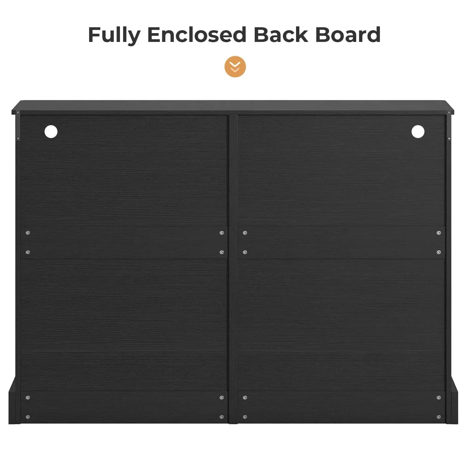The stylized pedestal not only gives the dresser a classic look but also brings extra stability. It will complement both modern or mid-century styles of bedrooms, and become your good storage organization. The innovative design backboard makes the dresser better sealed, and dustproof, While also increasing its stability and resistance to wobble. One cable hole on each side ensures that the plugs, light strips, or other media cables are well organized.