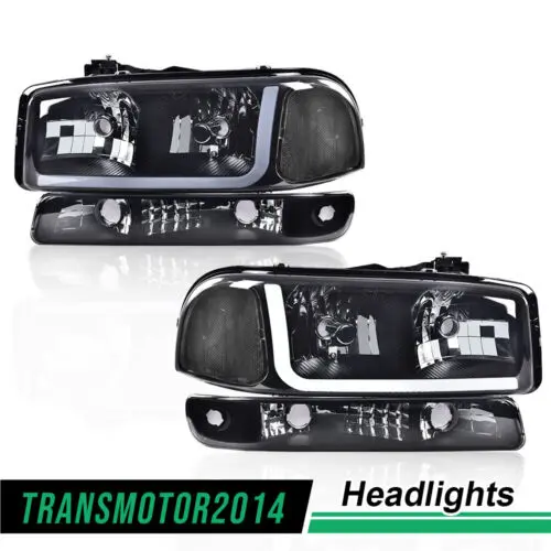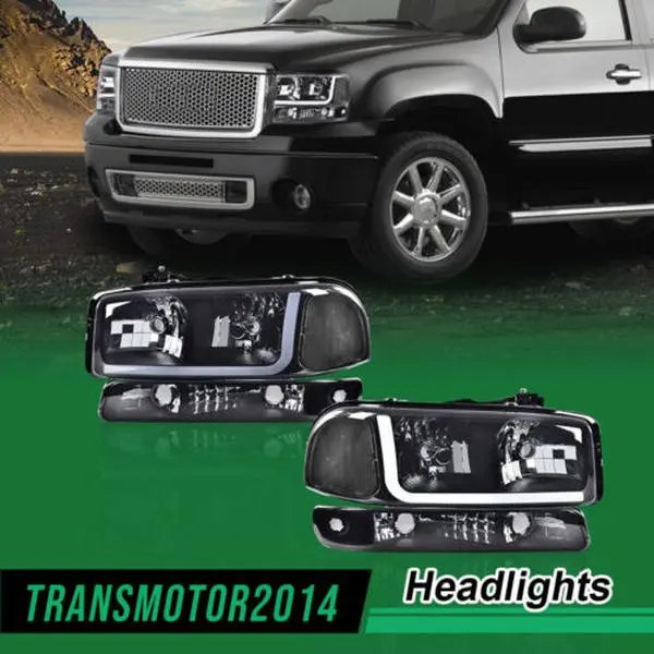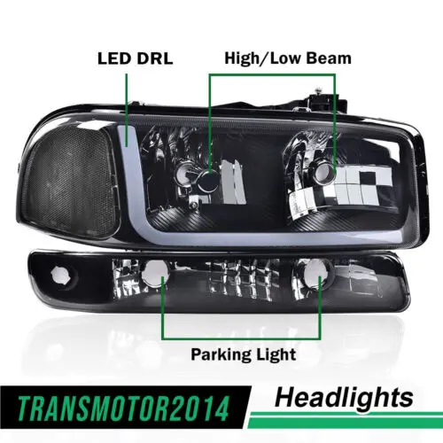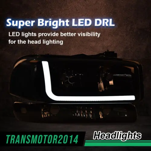 Led Drl Smoked Headlights W/Bumper Signal Lamps Fit For 99-07 Gmc Sierra/Yukon