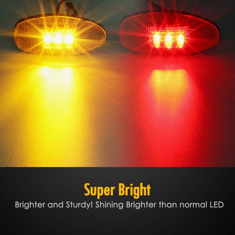 4 pieces (2 pieces with Amber LED lights for front and 2 pieces with Red LED lights for rear); Powered by 3 pieces super bright Flux LED lights inside
