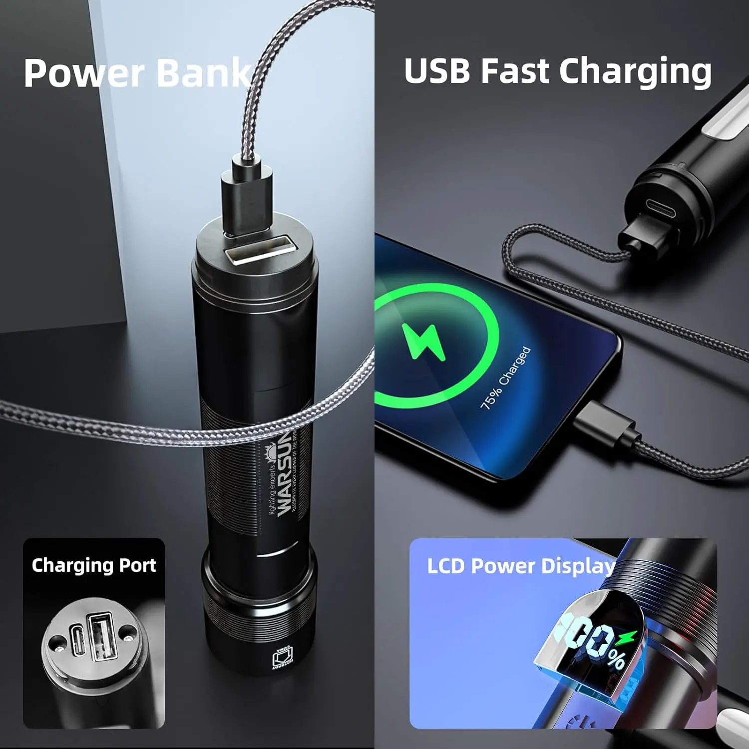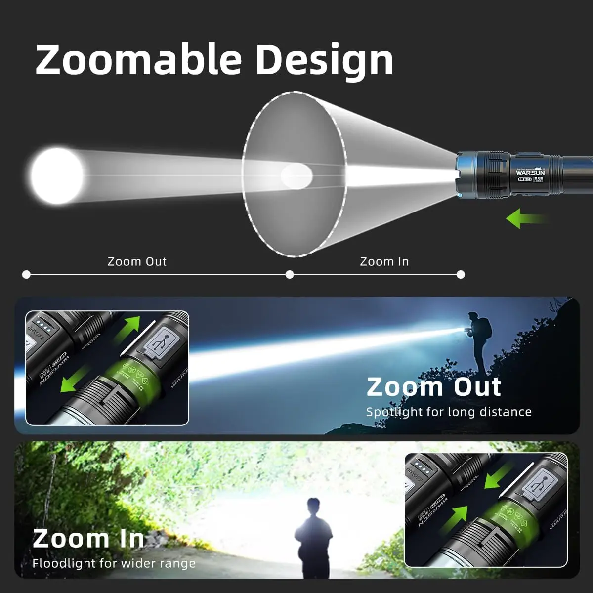 ·Flashlight High Lumens: WARSUN LED flashlight is equipped with a super bright LED chip to produce up to 1200 lumens brightness. Our high powered flashlight meet your various illumination needs, lighting up to 1600ft distance, for emergencies, camping, hiking.