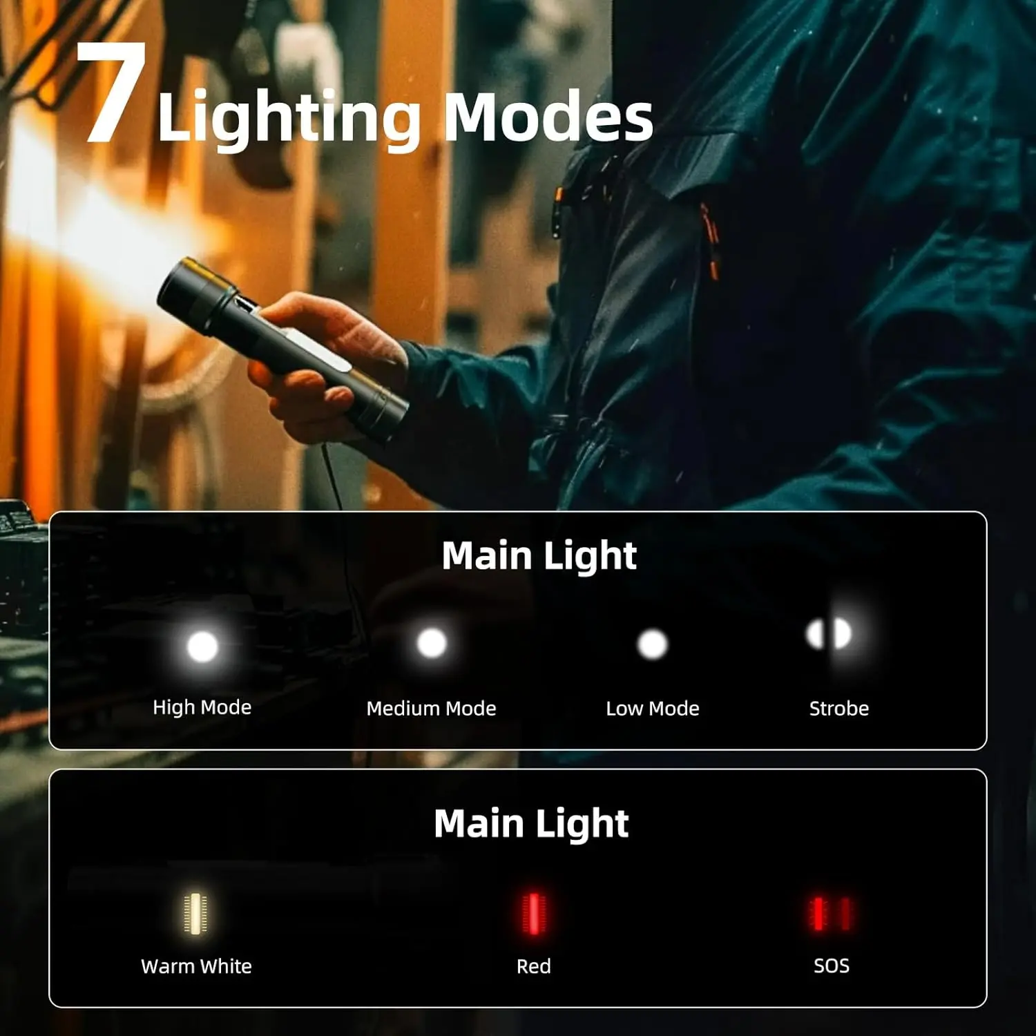 ·Magnet Flashlight & COB Sidelight: Designed with a strong magnetic base, WARSUN magnetic flashlight can adsorb to any iron surface. In additional, our flashlight is equipped with COB sidelight, which can free your hands for variety work purpose, such as repairing car, checked power outage at night, inspection, and so on.