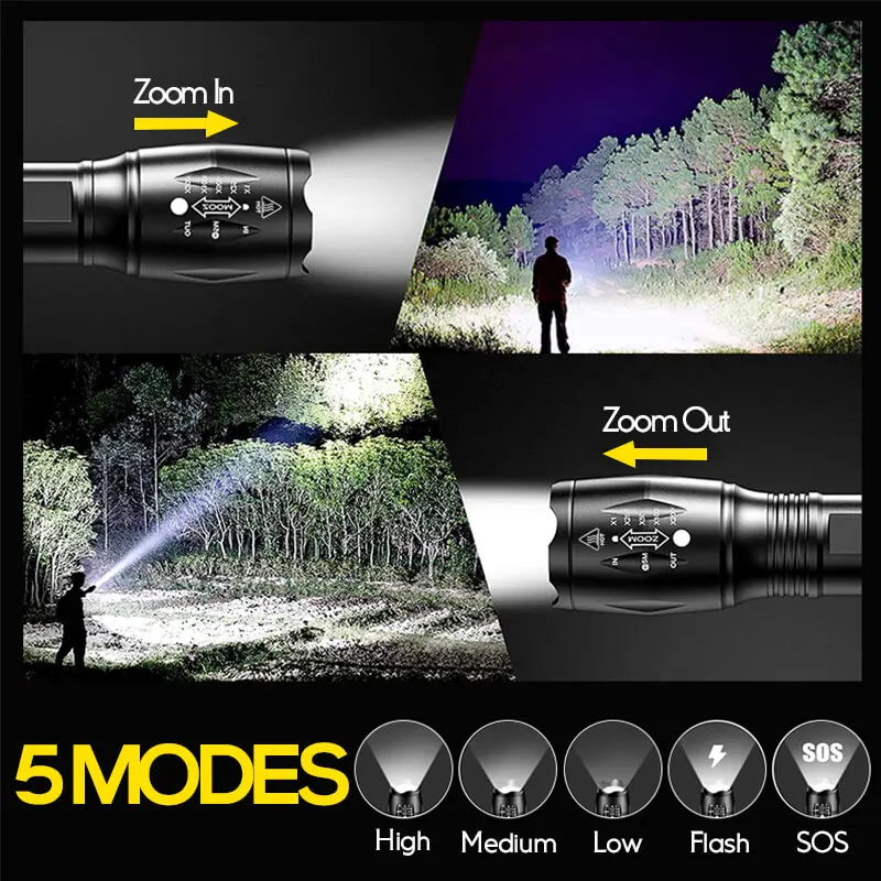 ·Multifunctional Design: Switch between five different lighting modes to suit any situation or need. From high beam to strobe, this flashlight has got you covered.