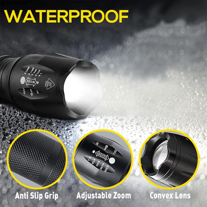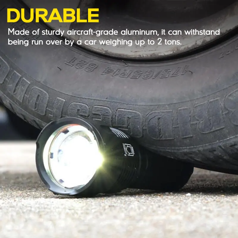 ·Durable and Waterproof: Built with high-quality materials, this portable zoomable LED flashlight is designed to withstand even the toughest outdoor conditions. With a waterproof rating of IPX4, it can handle rain or water splashes with ease.