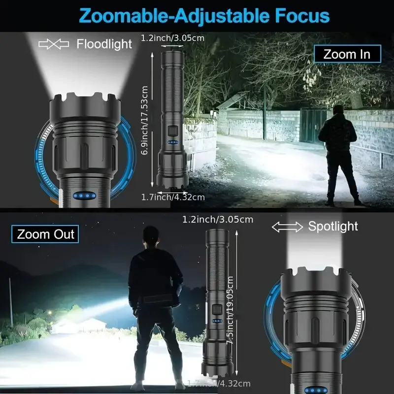 Variable focusing and used as an energy storage device: High luminous flux rechargeable LED safety lamp, adjustable focusing can be adjusted to suit different usage scenarios. The LED lamp allows you to choose either a point light source or a floodlight source. Our lamp can even charge a mobile phone and can be used as an energy storage device during outdoor activities.