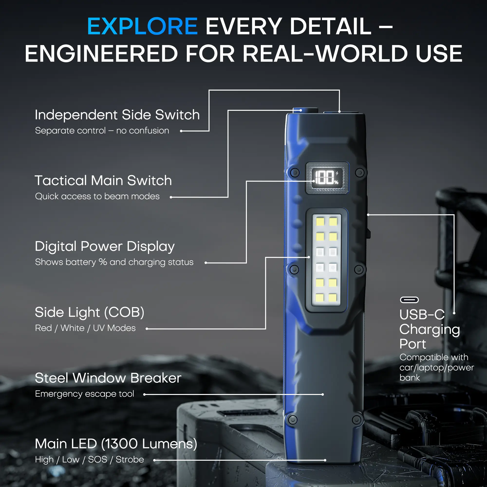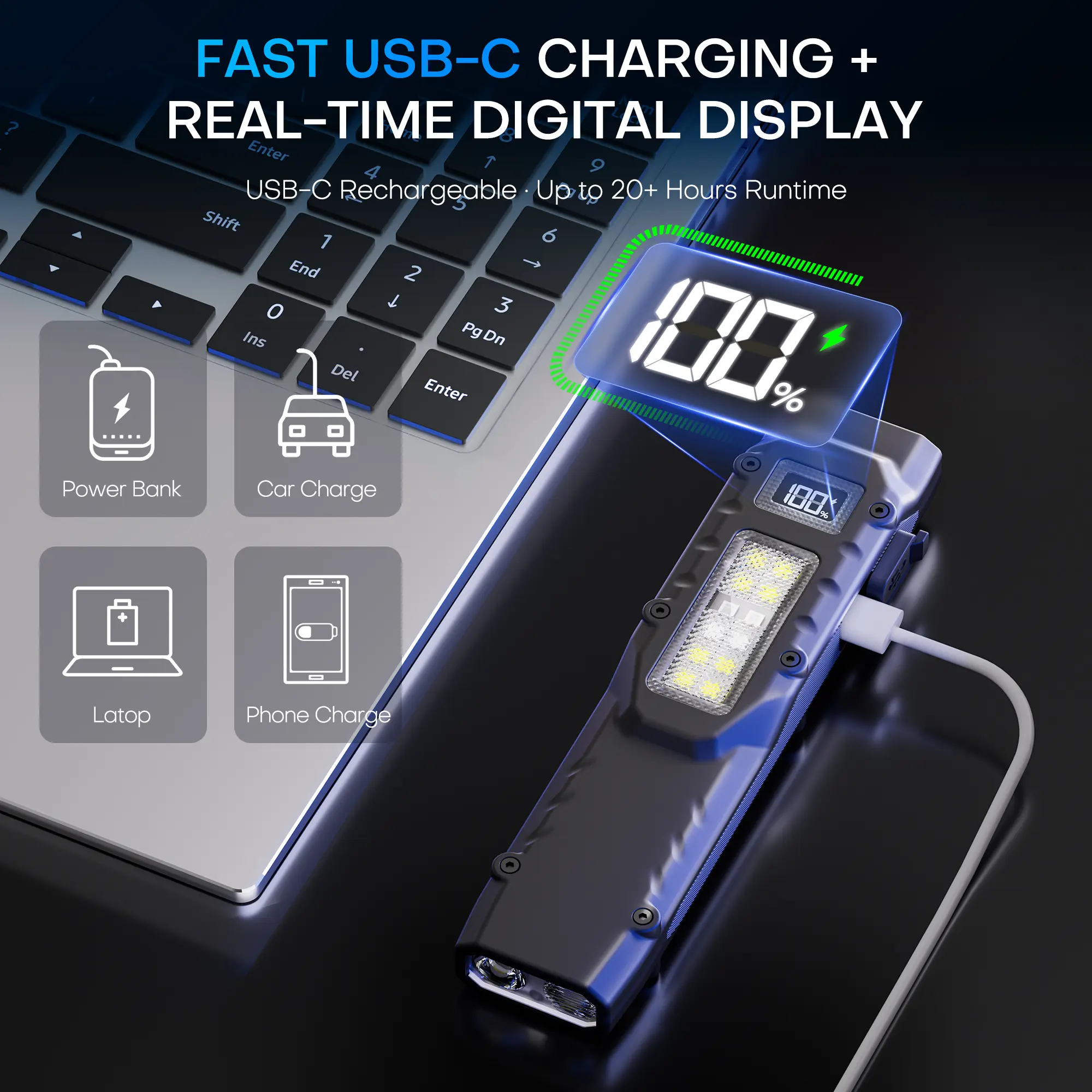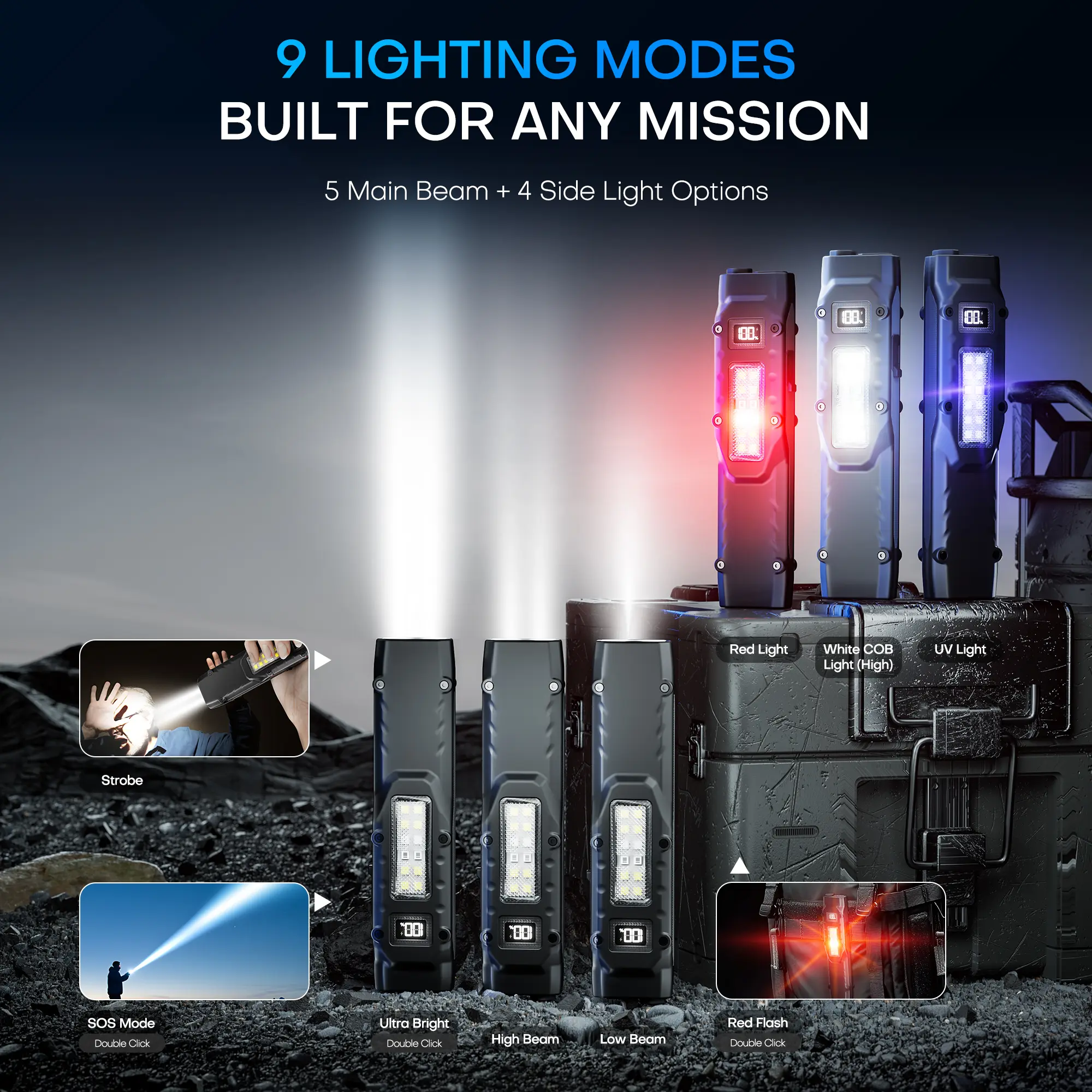 The EDC Super Bright Flashlight Tactical Flat USB Rechargeable Portable LED Pocket COB Work Light is a versatile and practical light source for various outdoor activities and emergency situations. With its multiple lights, rechargeable battery, and compact design, it is a useful addition to any outdoor kit. Perfect for Mother's Day and Valentine's Day gifts.