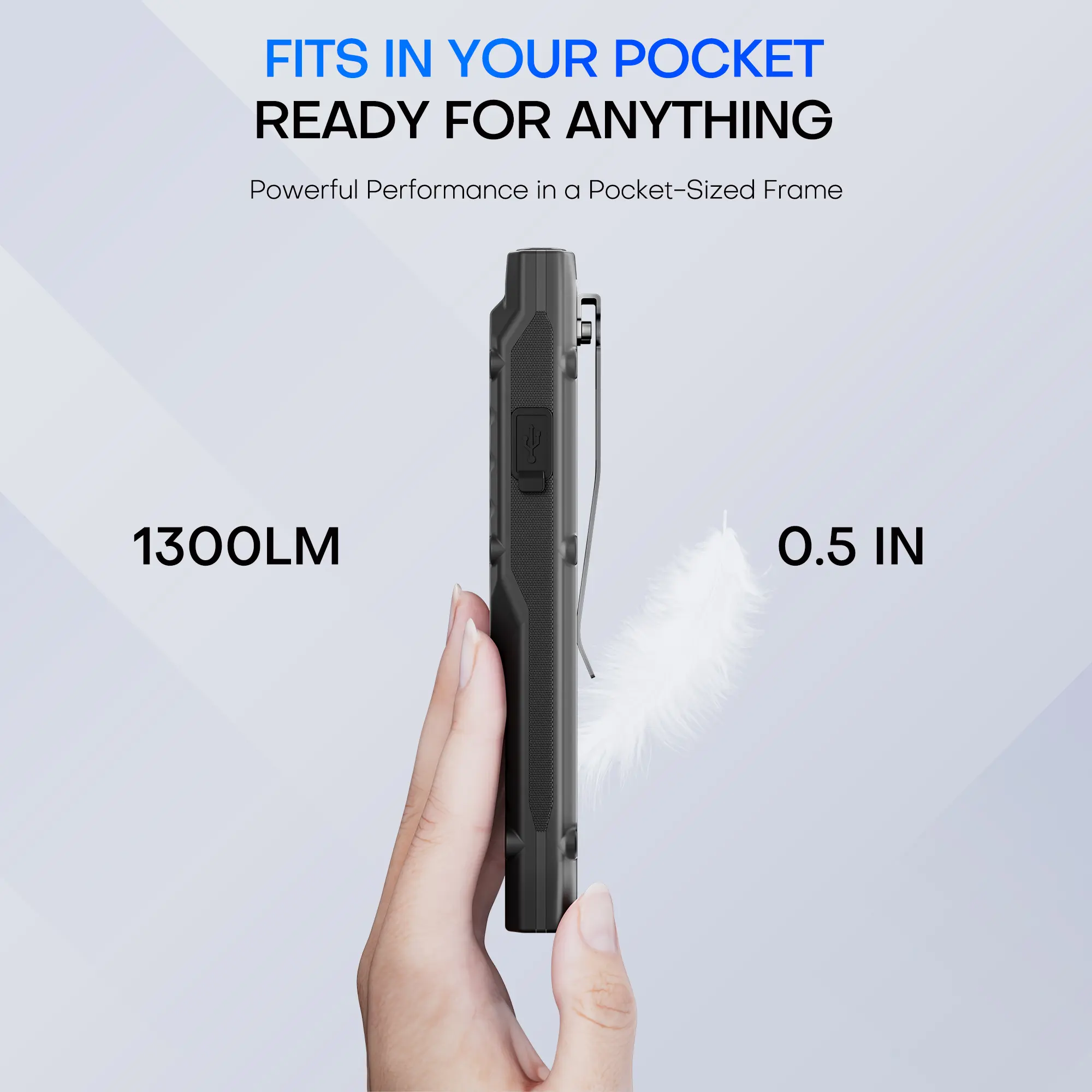 EDC Super Bright Flashlight Tactical Flat USB Rechargeable Portable LED Pocket COB Work Light 1500LM 1000mAh Outdoor Light for Fishing Running Jogging Walking Emergency Camping Home Survival Supplies Mother's Day Valentine's Gifts Light Source