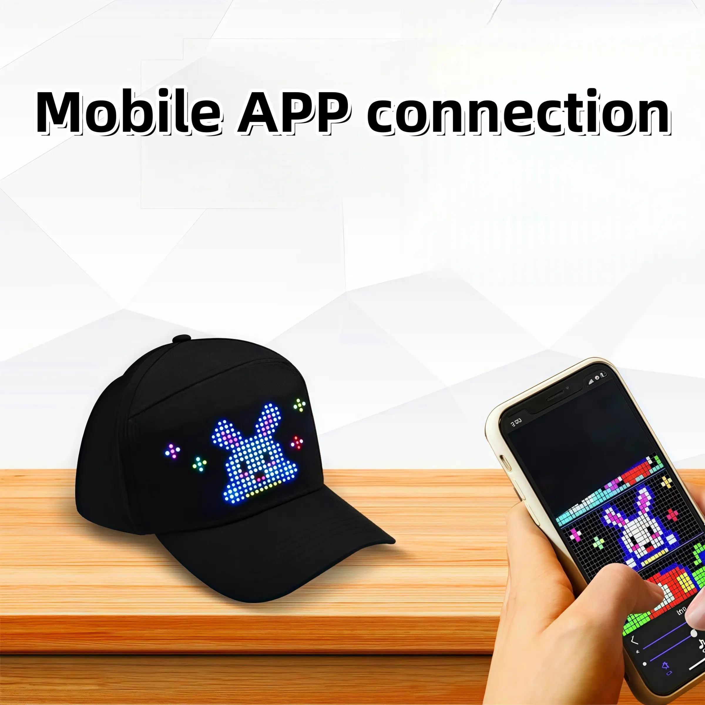 【APP Intelligent Control | Free DIY Display】Through Bluetooth connection on the mobile app, you can customize text, patterns, animations, and scrolling subtitles. The operation is simple and smooth, allowing your LED luminous cap and programmable display cap to easily showcase personality and trends.