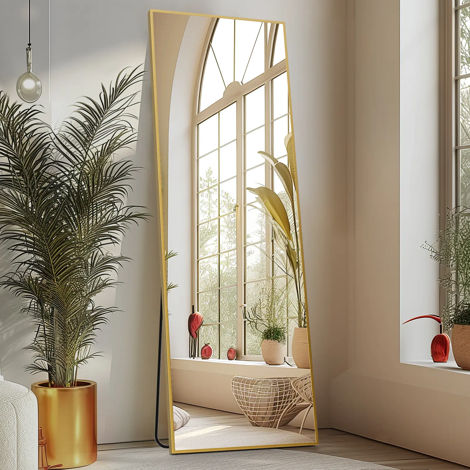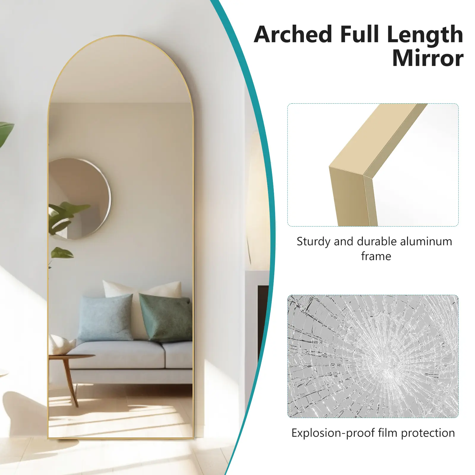 ·UPGRADED HIGH-FEFINITION EXPLOSION-PROOF GLASS:Our full body mirrors are made of nano glass that is unbreakable and won't spill even if broken. The light strip makes the glass clearer and brighter.