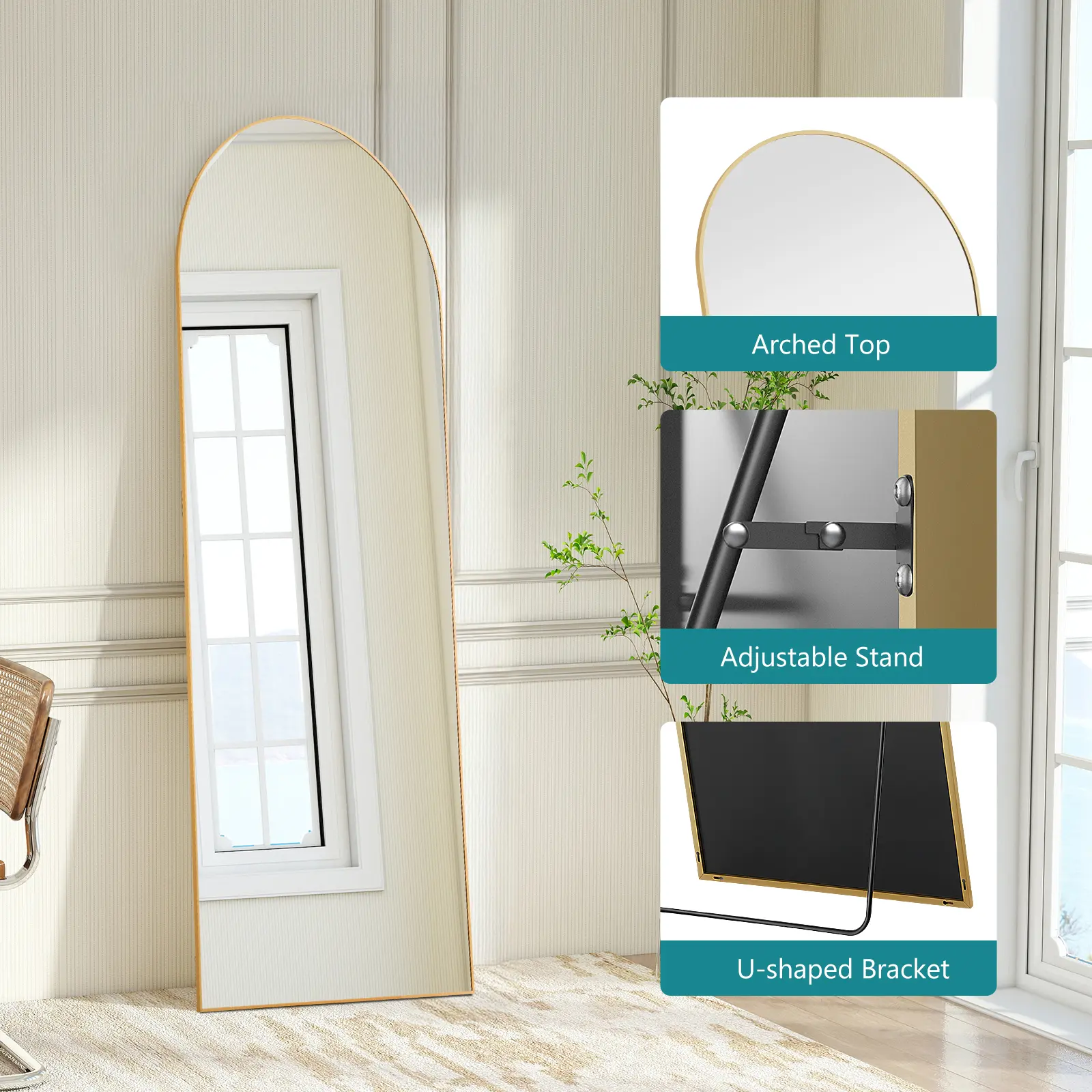 ·NO INSTALLATION REQUIRED:No installation required, this vanity mirror can be used as a floor mirror/hanging mirror/wall mirror to meet your various needs. It is suitable for bedroom、 living room、 dressingroom gym and so on.