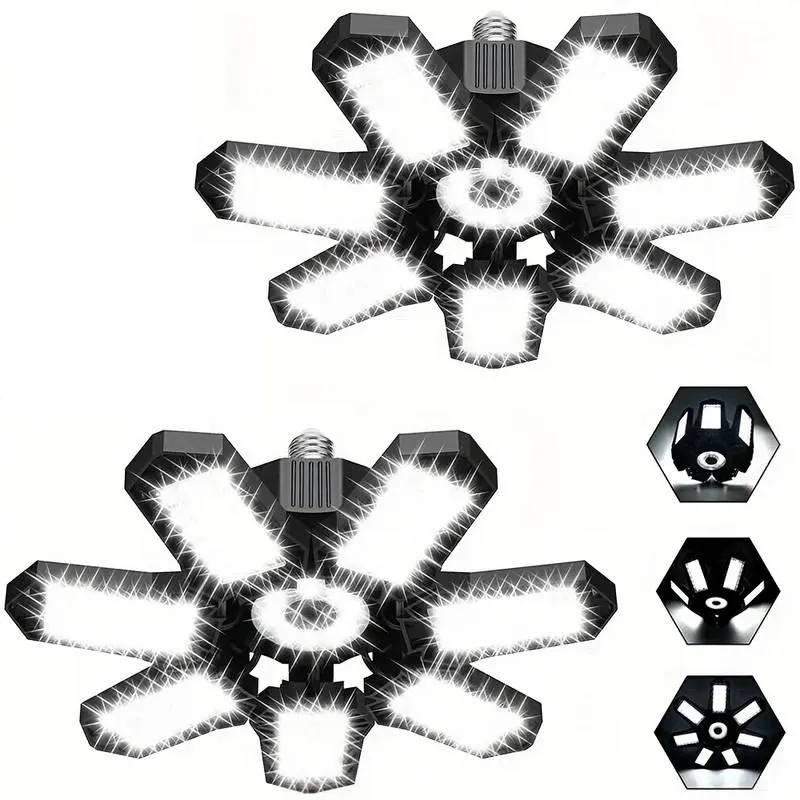 Flexible & Unique Design: Each of the six LED panels can be adjusted to fold up to 90° so that you can adjust garage light and easily illuminate various dark corners; this will make the light cover 360° area.