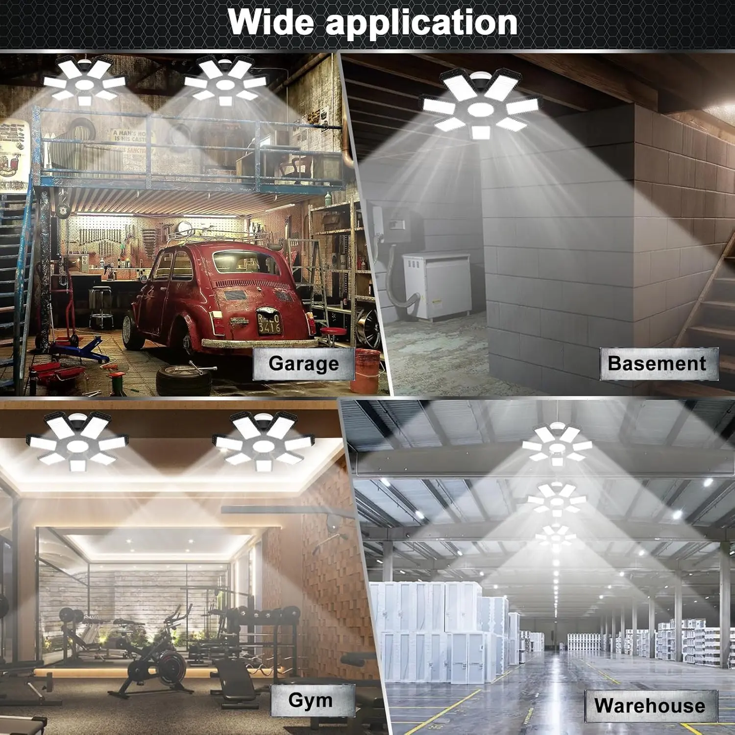 Feel The Different Garage Lighting: Our LED garage light first adopted 6 lighting panels. Super Ultra Bright LED lights for your garage, providing you the real first-class indoor lighting experience.