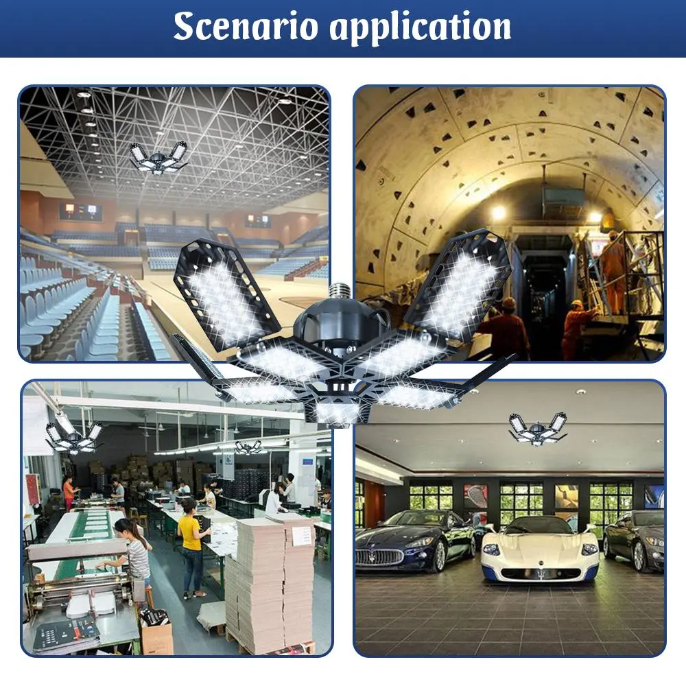 LED Garage Lights Deformable Bulb LED Ceiling Lights Workshop Lamps Fixture 10-Leaf Work Shop Ceiling Lamp
