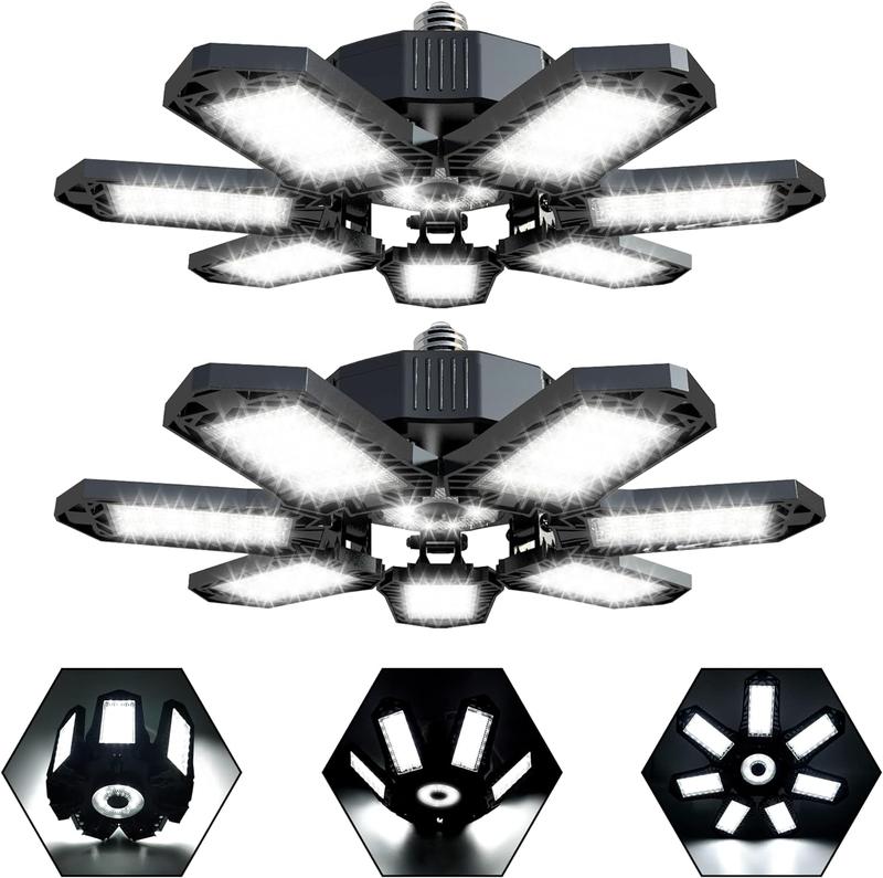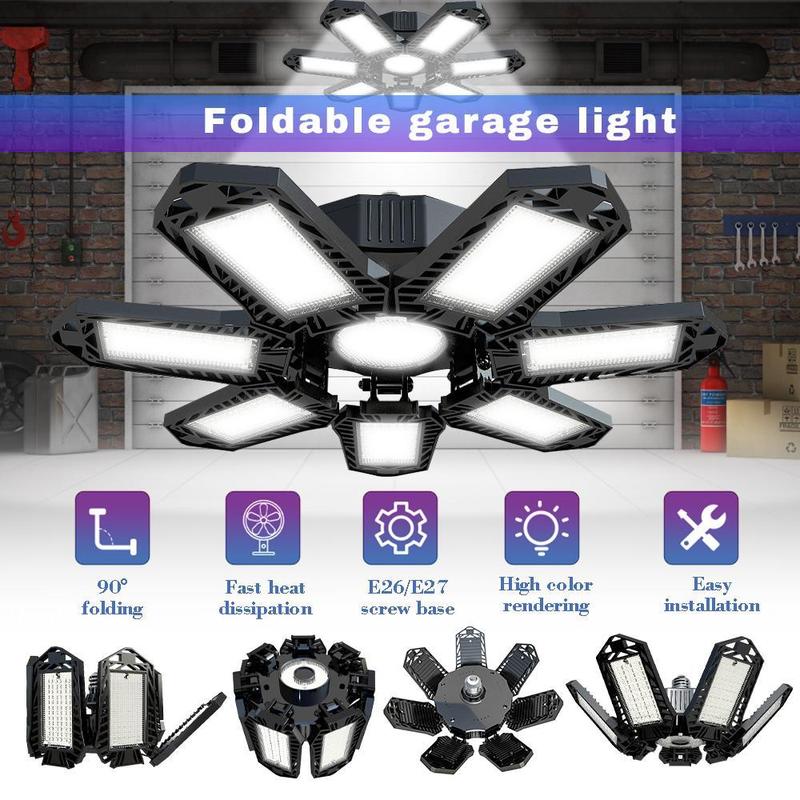 ·Flexible & Unique Design: Each of the six LED panels can be adjusted to fold up to 90° so that you can adjust garage light and easily illuminate various dark corners; this will make the light cover 360° area.
