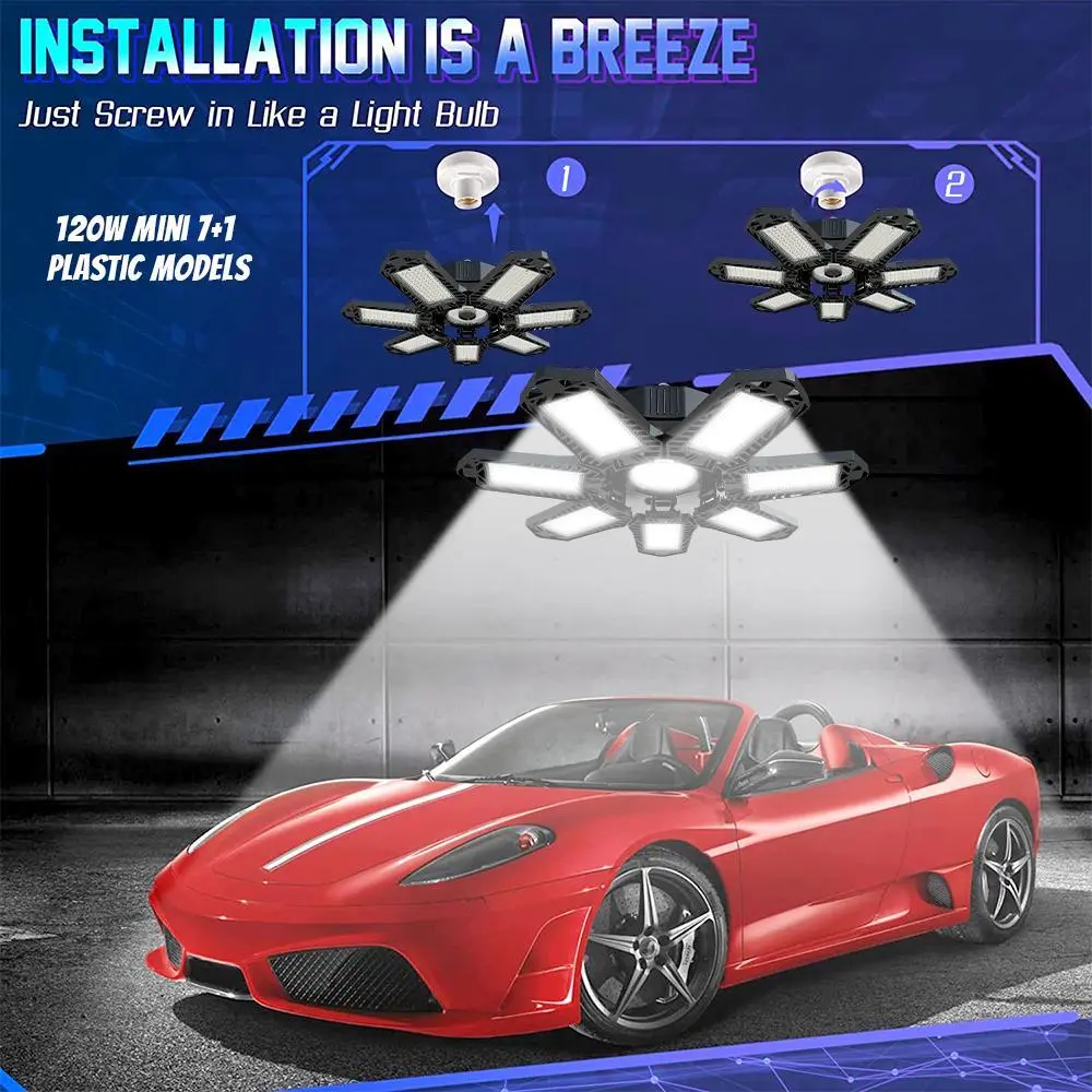 ·Garage Light Easy to Install, No Wiring Required: The deformable LED garage light is compatible with the E26/E27 light socket, which makes its installation as simple as screwing a light bulb, no tools, no wiring and no professional electricians are needed.