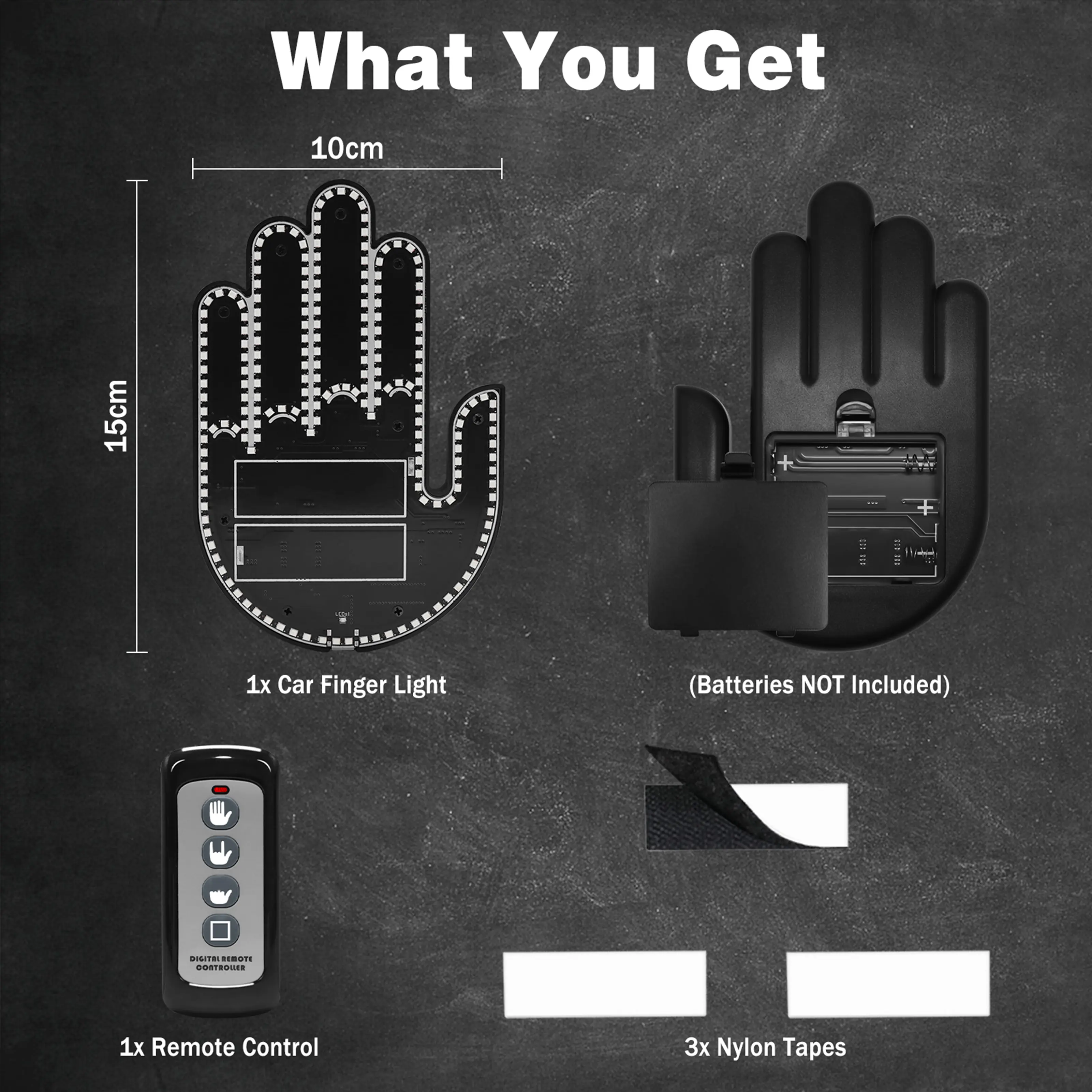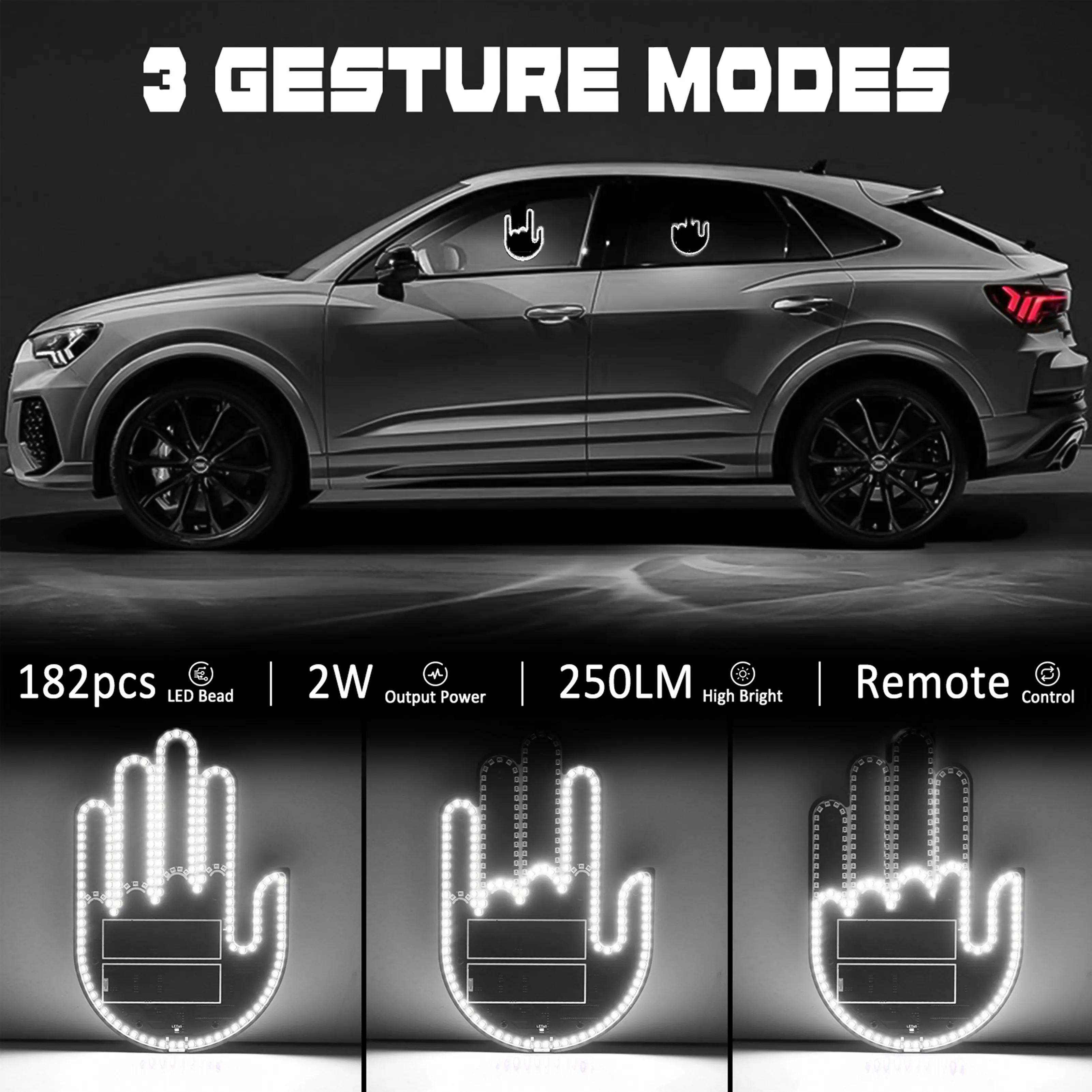 ·THREE GESTURE LIGHTS: This upgraded car middle finger light offers three distinct gesture lights: a friendly greeting gesture and a peace sign symbolizing love. Use these versatile gesture lights to express your mood and personality.