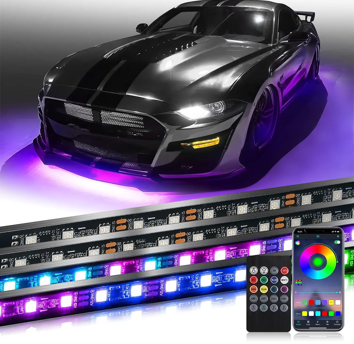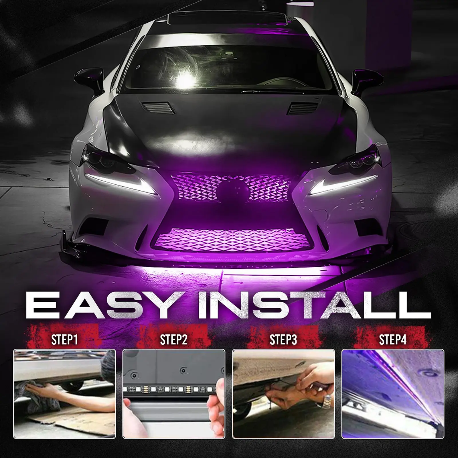 Enhance your vehicle with this versatile LED Grille Light Kit. The kit includes 4 pieces of LED grille lights, all controlled by an app for easy operation.The Size:47Inch x2 & 35Inch x2