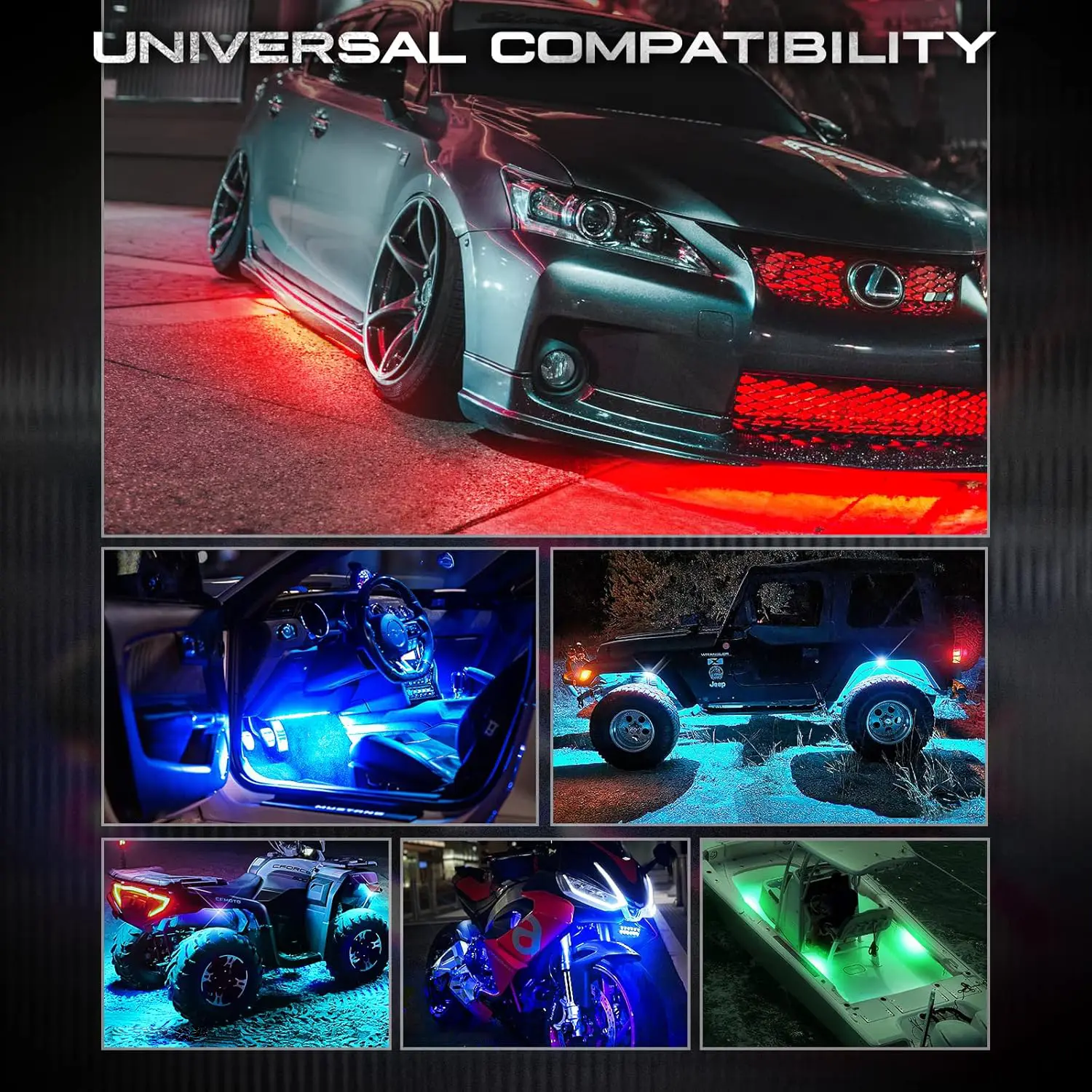 ·[Excellent Car LED Lights] Our underglow car lights kit feature brighter, more uniform light output and optimal illumination performance with over 16 million colors to choose from, making your car stand out and your driving experience unique.