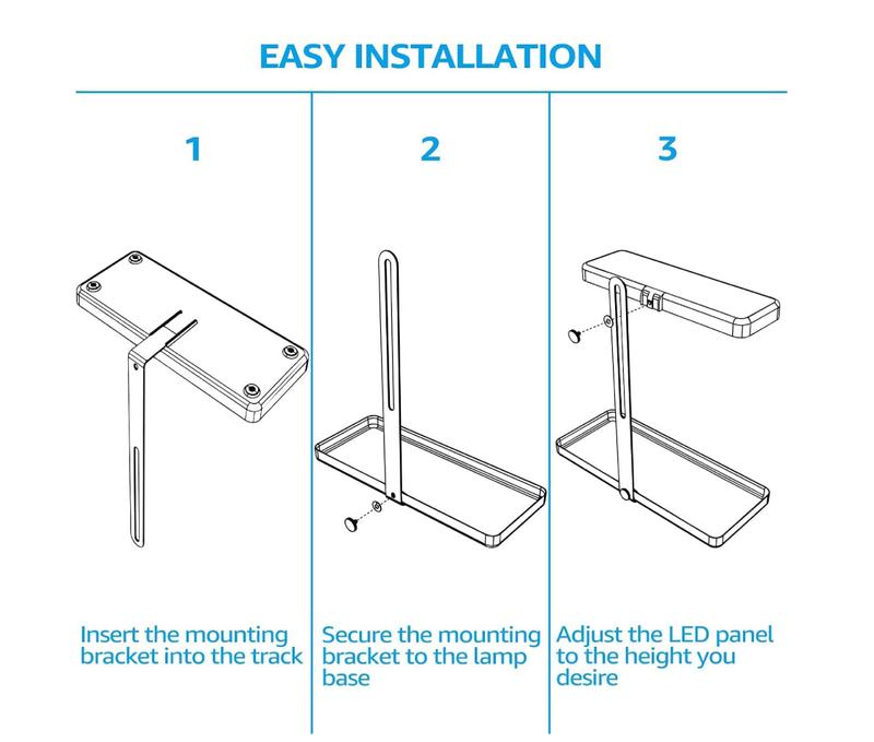 You can adjust the height of the LED panel by moving it up and down on the metal bracket to meet the LED grow light needs of different growth periods. This grow-light only needs 20W to produce 1150lm of brightness. Pots and plants are not included