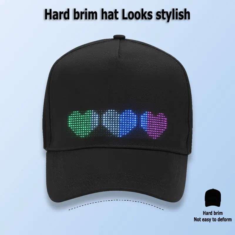 ·Appealing Appearance: This LED hat has 576 light beads, which can present various patterns. You can create and save your favorite images and texts on the app to show the unique style of your hat.