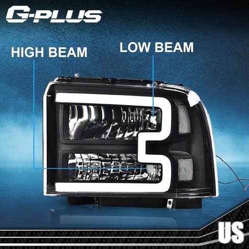 LED DRL Clear/Black Headlights Fit For 05-07 Ford F250 F350 F450 F550 Super Duty