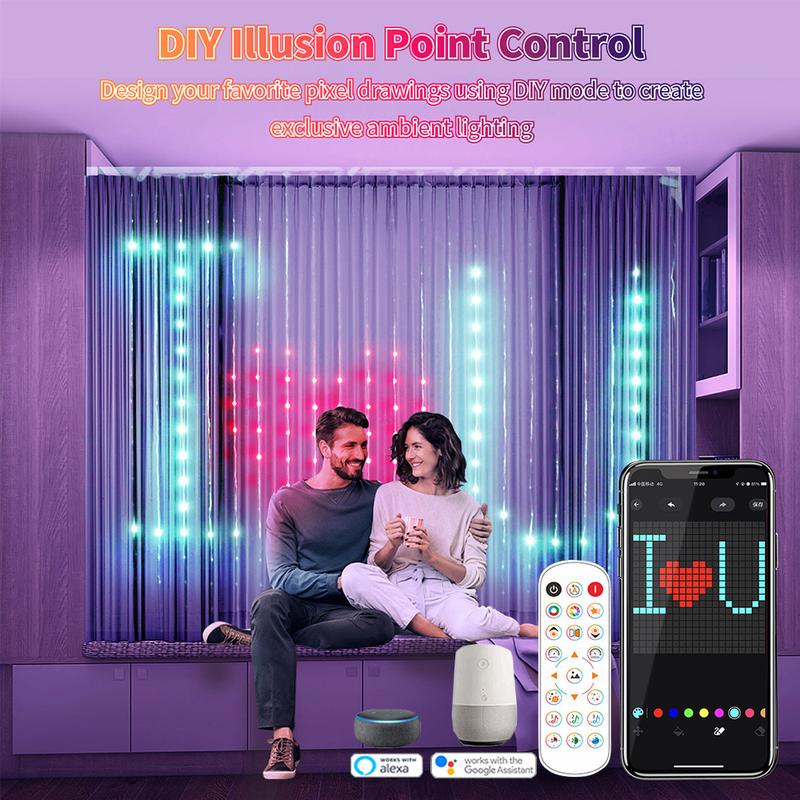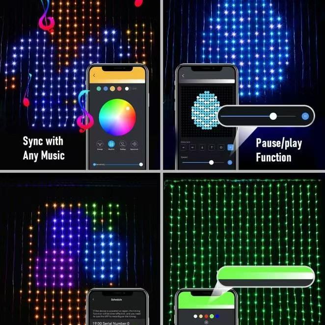 The curtain lights feature top hooks for easy installation. The lamp beads utilize high-end LED technology, offering low power consumption and effective heat isolation for enhanced safety. With intelligent dimming, the soft and warm glow is gentle on the eyes, ideal for bedroom decoration. The built-in timer Product Specification: 1M*1M/2M*2M / 3М*3M