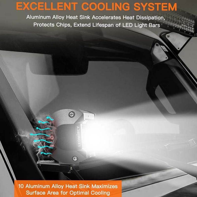 The IP68 waterproof rating keeps the light bar protected even in harsh conditions. Rubber pads on metal connections ensure resistance to water. The aluminum alloy heat sink improves heat dissipation, extending the lifespan of the LEDs, while maintaining consistent brightness in rain, fog, or snow.