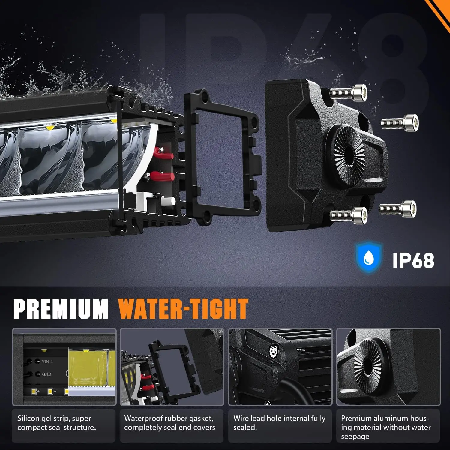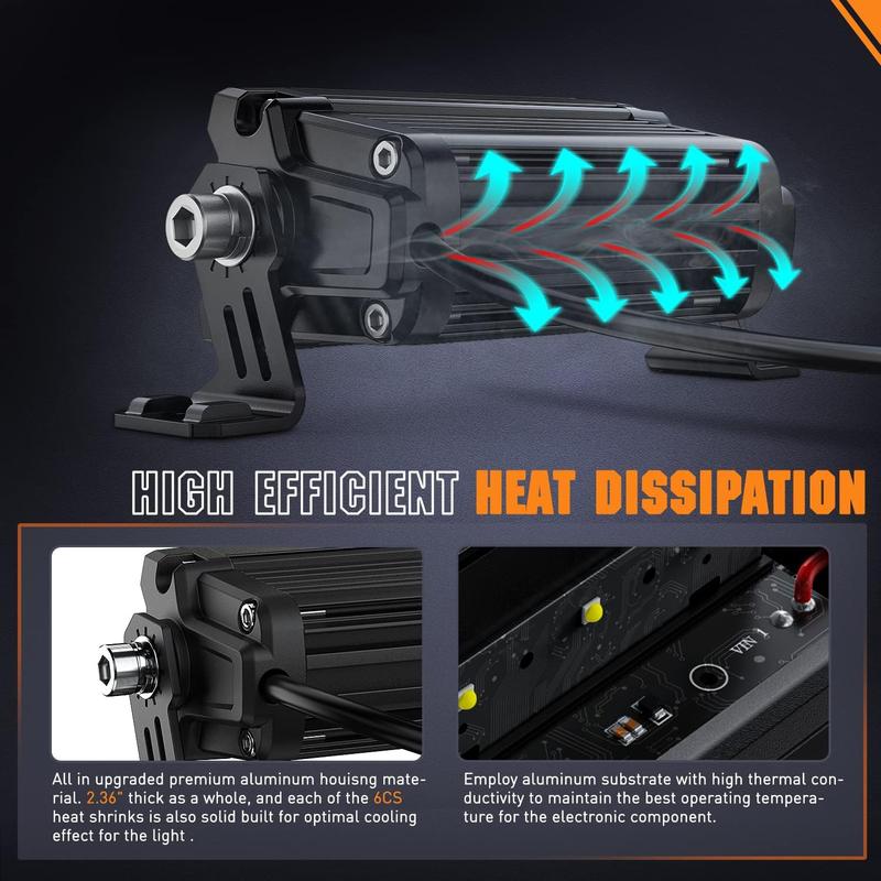 ·【Premium Durability】 IP68 waterproof rated, powerful to withstand any harsh environments and weather conditions. Solid built in quality 6063 and ADC12 aluminum housing and thick heat shrink shell, efficiently accelerate heat dissipation and maintain a safe temperature to ensure stable lighting output as well as lighting durability
