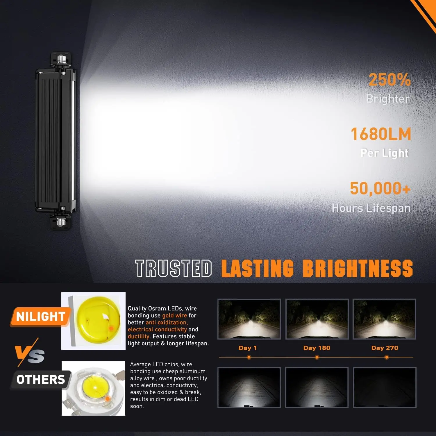 ·【Trusted Hyper Bright】Employ top-notch Osram P8/5W led chips, total 15 watts per light, with lighting performance 1680LM/PC, 750Lux@10Meters, 1Lux@266Meters (873FT). Features a trusted ultra-bright, high-intensity, stable light output. Improves driving safety with a further visual area. Lifespan extends over 50,000 hours