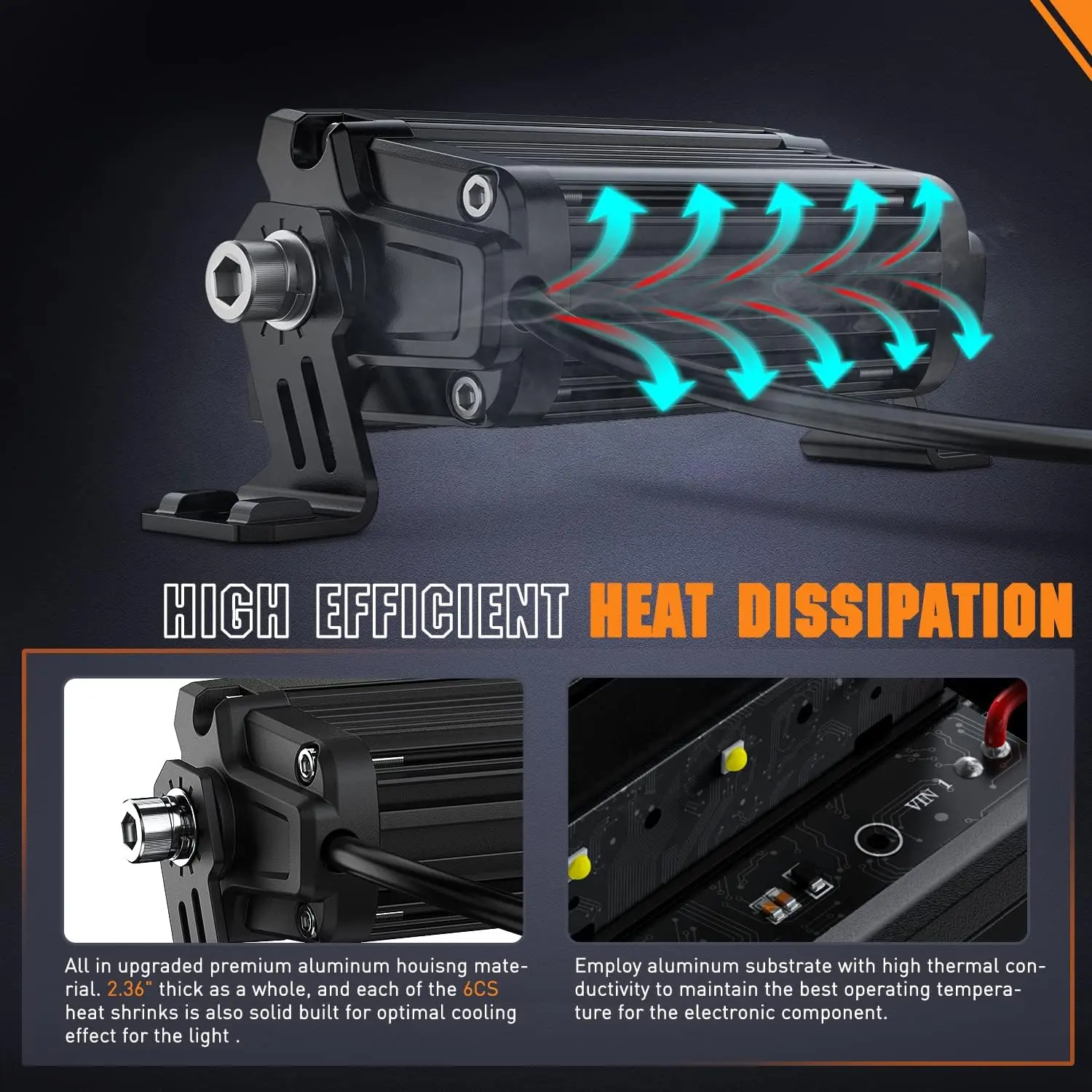 ·【Premium Durability】 IP68 waterproof rated, powerful to withstand any harsh environments and weather conditions. Solid built in quality 6063 and ADC12 aluminum housing and thick heat shrink shell, efficiently accelerate heat dissipation and maintain a safe temperature to ensure stable lighting output as well as lighting durability