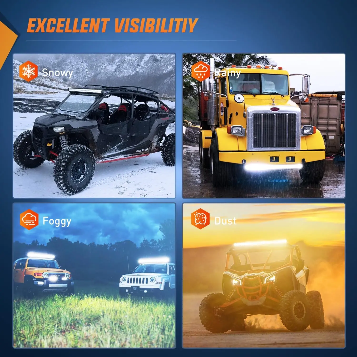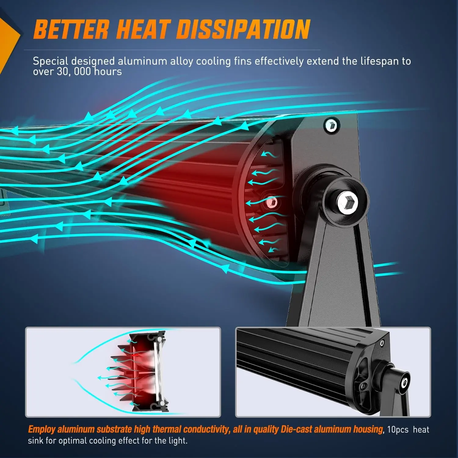 The light's side mounts brackets can be adjusted to any angle your preference. The light bar gets fixed to resist shock and any vibration conditions.