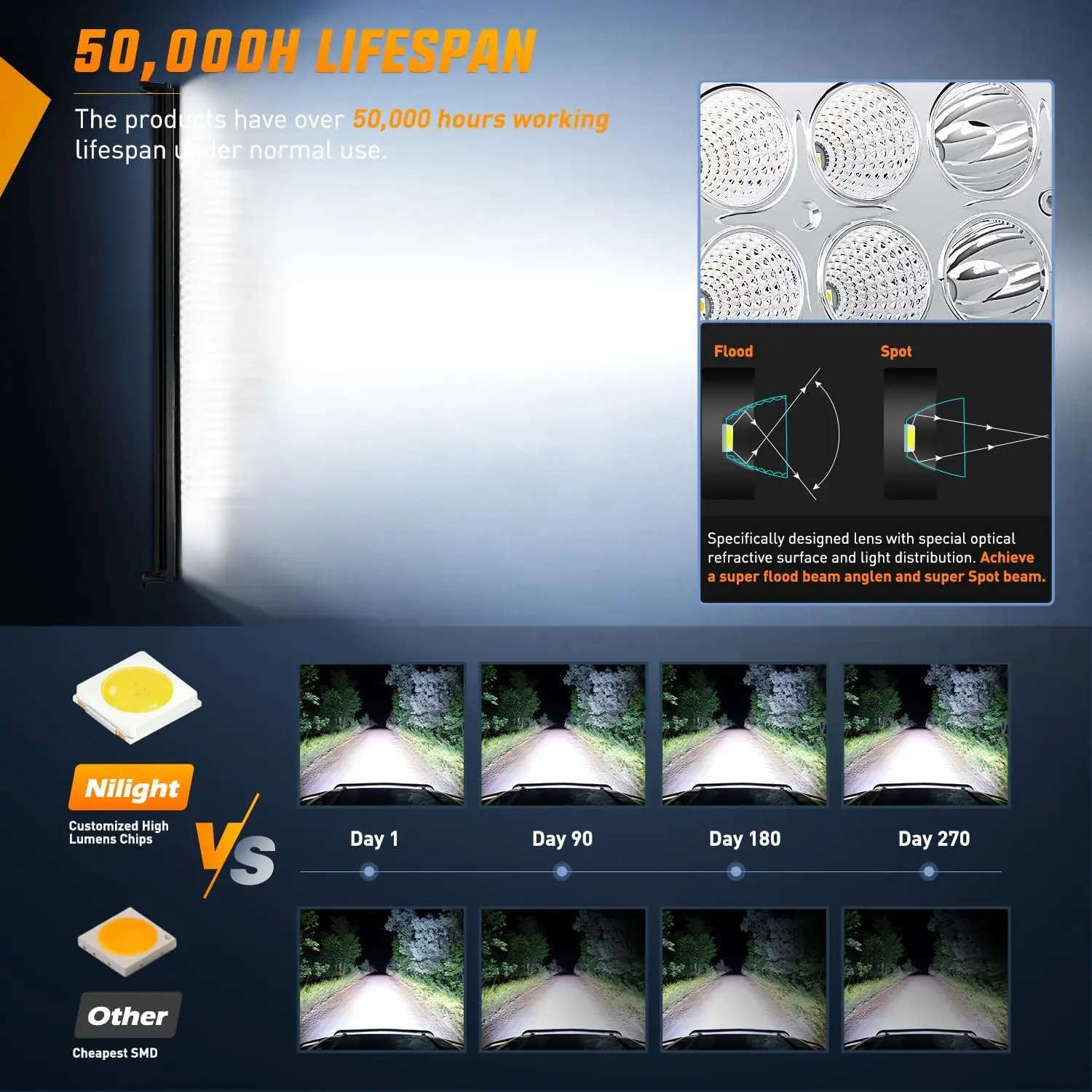High-quality LED chips emit bright and white light. Its perfect beams provides long distance irradiation and wide-spread illumination