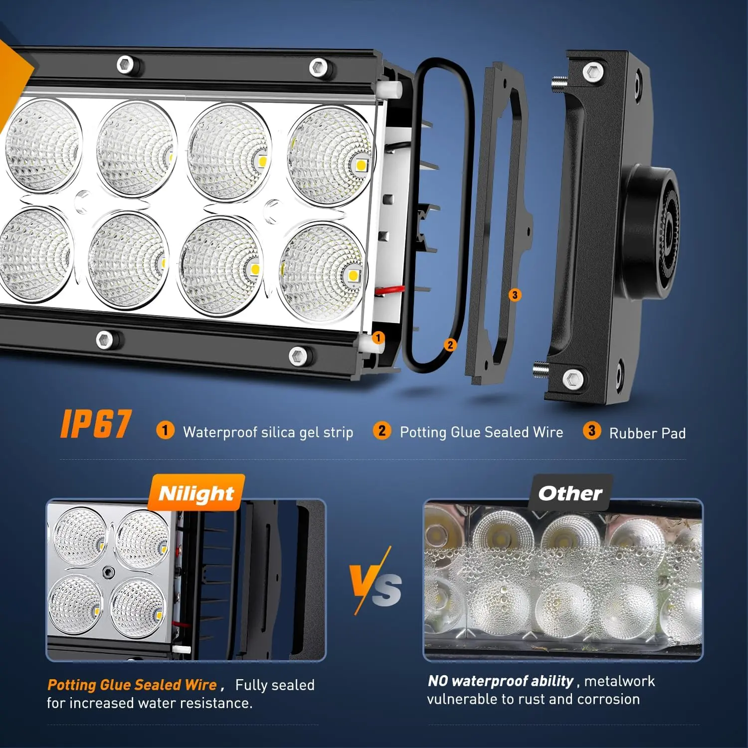 The Industrial-Grade Aluminum Alloy housing and the waterproof rubber pad and silicone sealing strip make the light handle different kinds of weather.