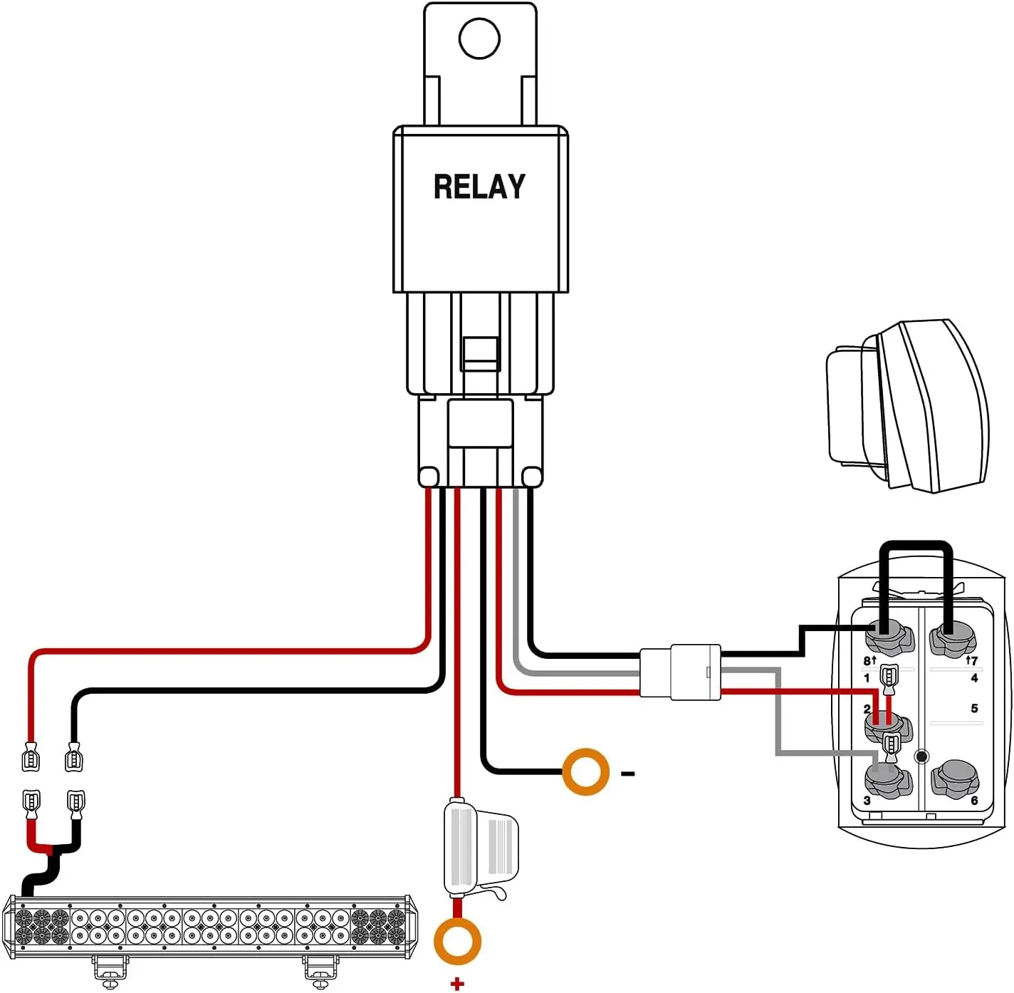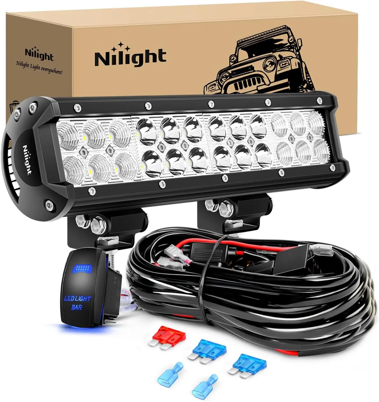 ·Package Includes: 1PC 72W LED Light Bars, 1 x 5Pin Rocker Switch Wiring Harness Kit