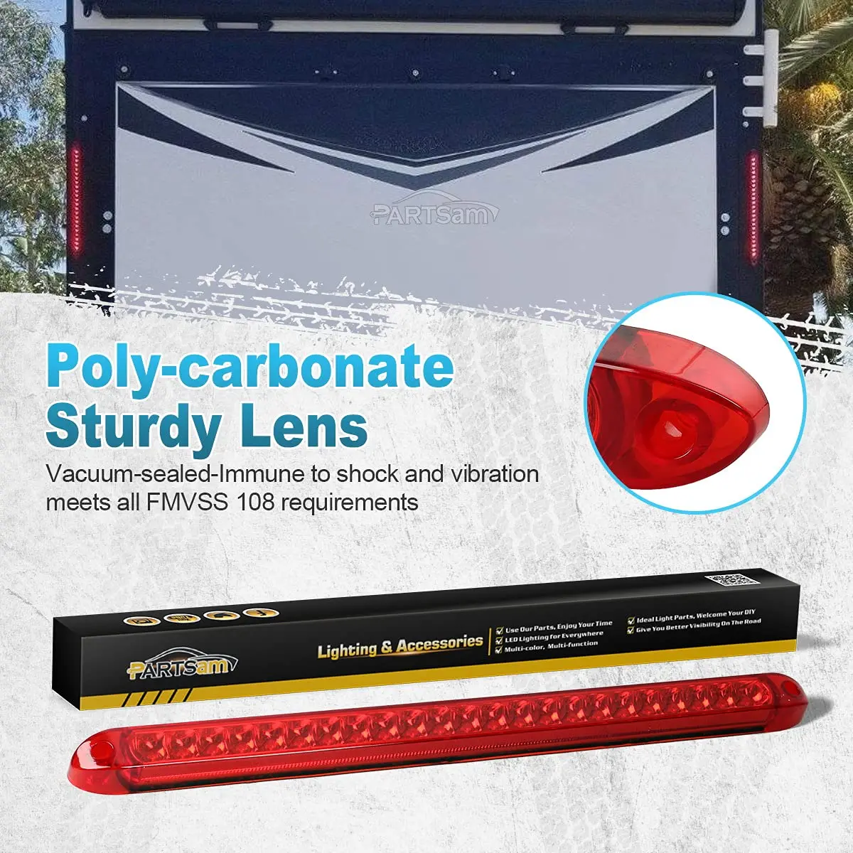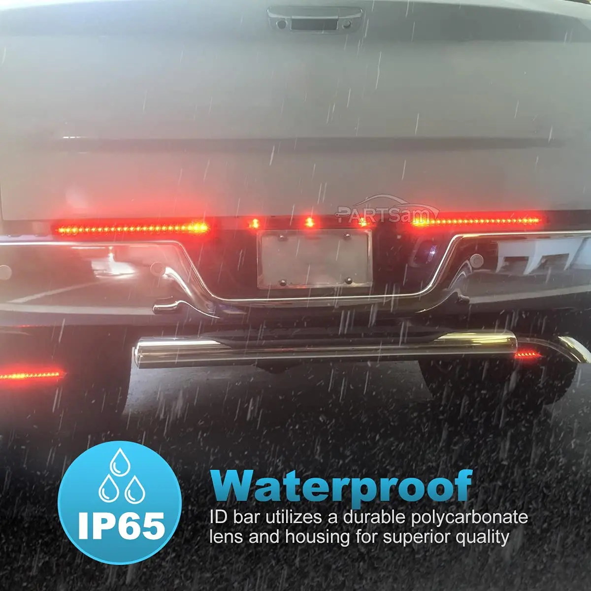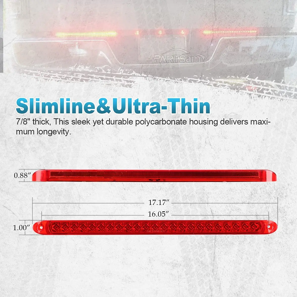 ·Dimension of the trailer light bar red: The overall length is about 17 inches, width is about 1 inch, and the thickness is about 0.88 inch. And hole to hole distance: 16.05" in.; It's a nice low-profile slim tail light. This white led strip bar is made of polycarbonate lens and is sonic welded to the housing. NOTE: This light bar is ip65 waterproof, please do not use it under water for a long time;