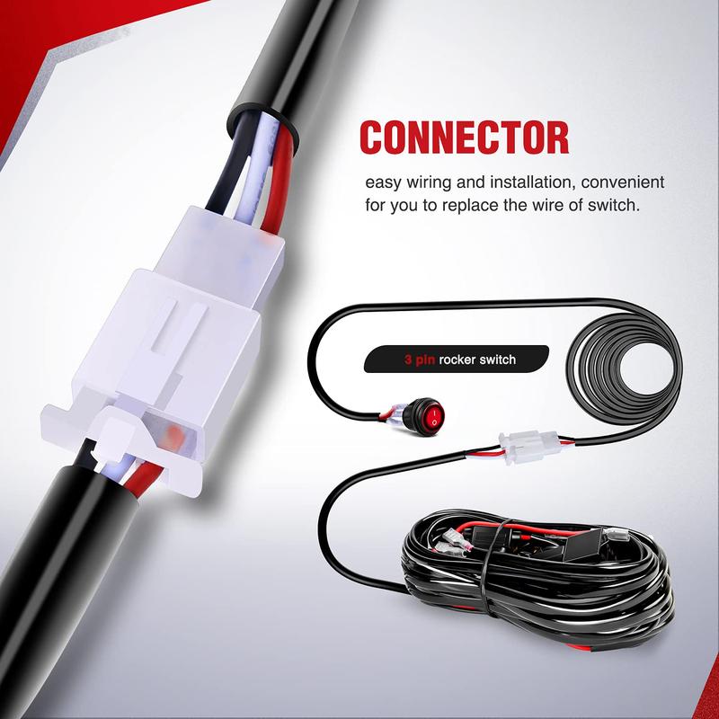 With 2pcs lights output connectors, the wiring harness can hook up one LED lights within 300W at the same time.