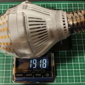 The plastic construction is flexible, and creaks a bit when squeezed. Due to the massive ceramic heatsink this bulb is heavier than any similar bulb I have. 192g, while my next heaviest is 145g, and a simple LED bulb is only 42g.