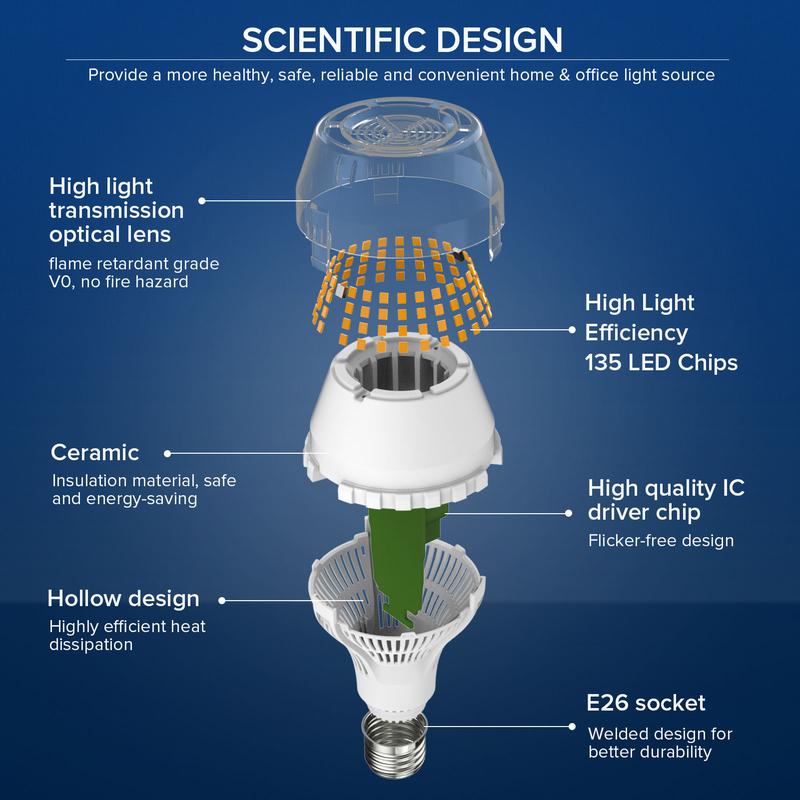 Safety First -The most important thing is that this LED 20 watt E26 Light Bulb IS SAFE to use in your home. The LED 20 watt E26 Light Bulb has an electrical safety certification label of ETL.