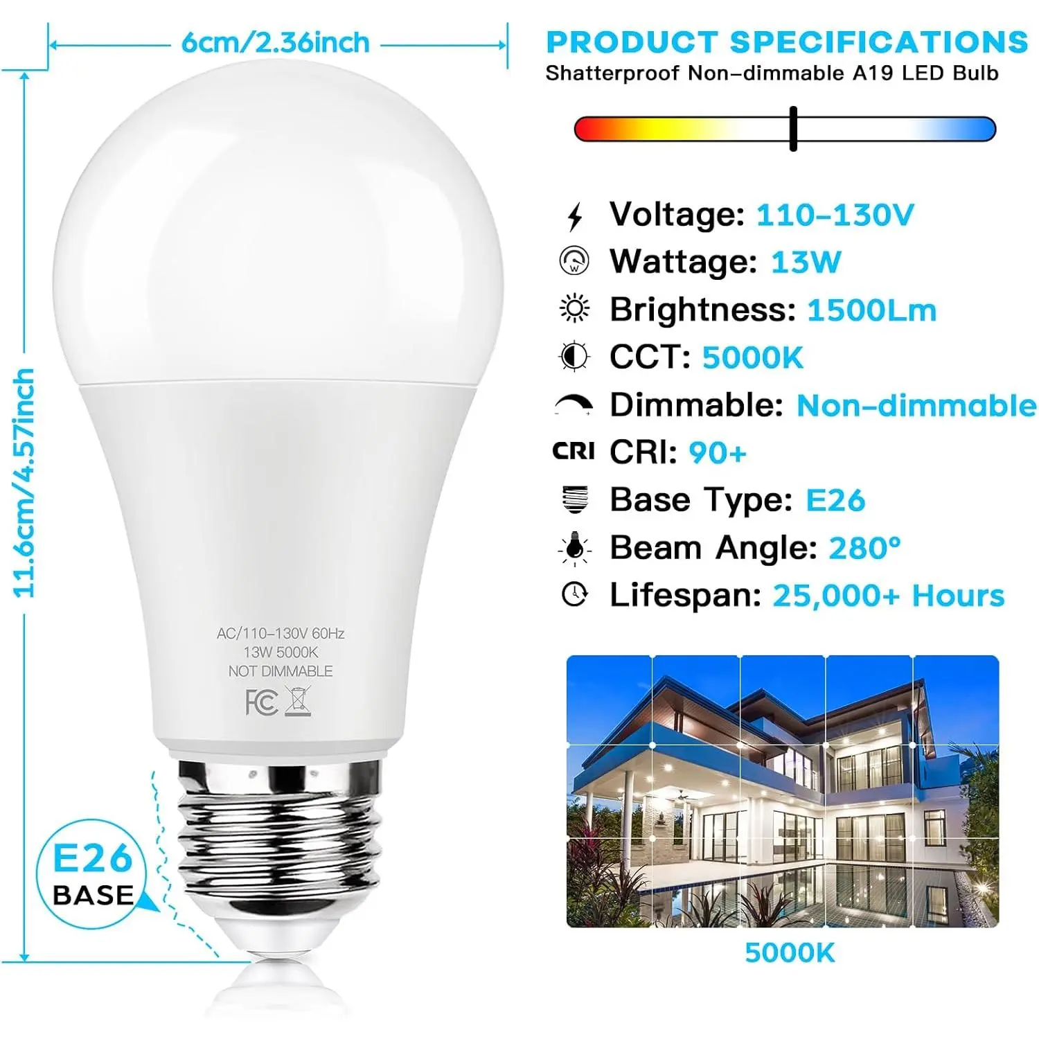 Each our 13W A19 LED bulbs have 25000 hours lifespan, expected to last over 22.83 years if you use your lights 3 hours per day, save lots of your cost and no more dangerous ladders.
