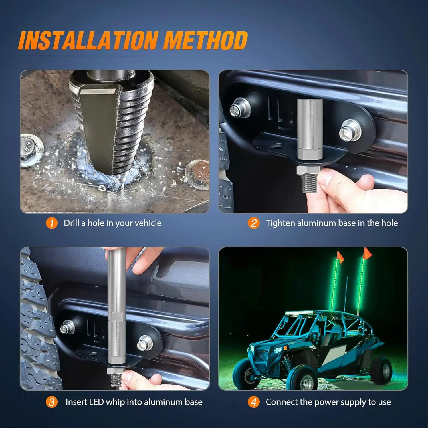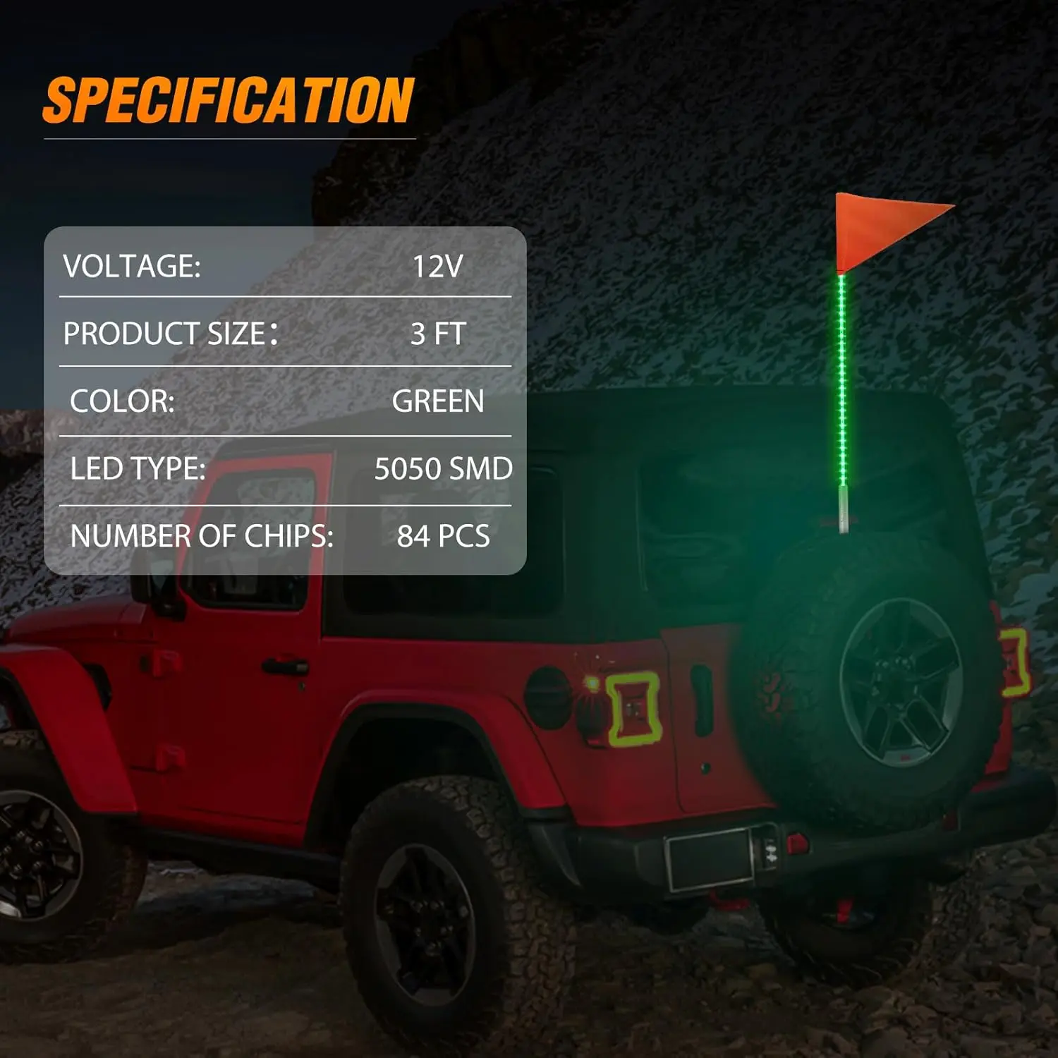 5. Nilight 1PCS 3FT LED Whip Light with Aluminum Base Green Color Safety Warning Pole Lighted Antenna Whips for RZR Polaris Dune Buggy Off-Road Truck UTV ATV Lighting Outdoor dealsforyoudays