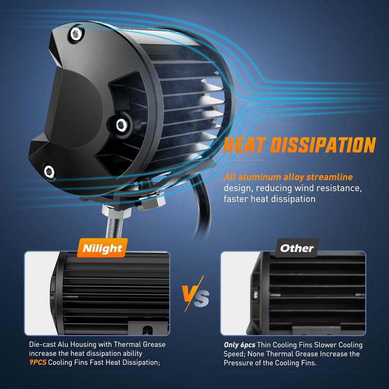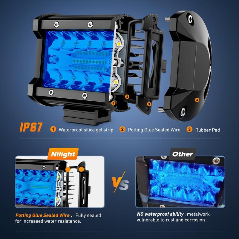High-quality LED chips emit bright and blue lens converts light into blue light. Combo of with flood and spot beams provides long distance irradiation